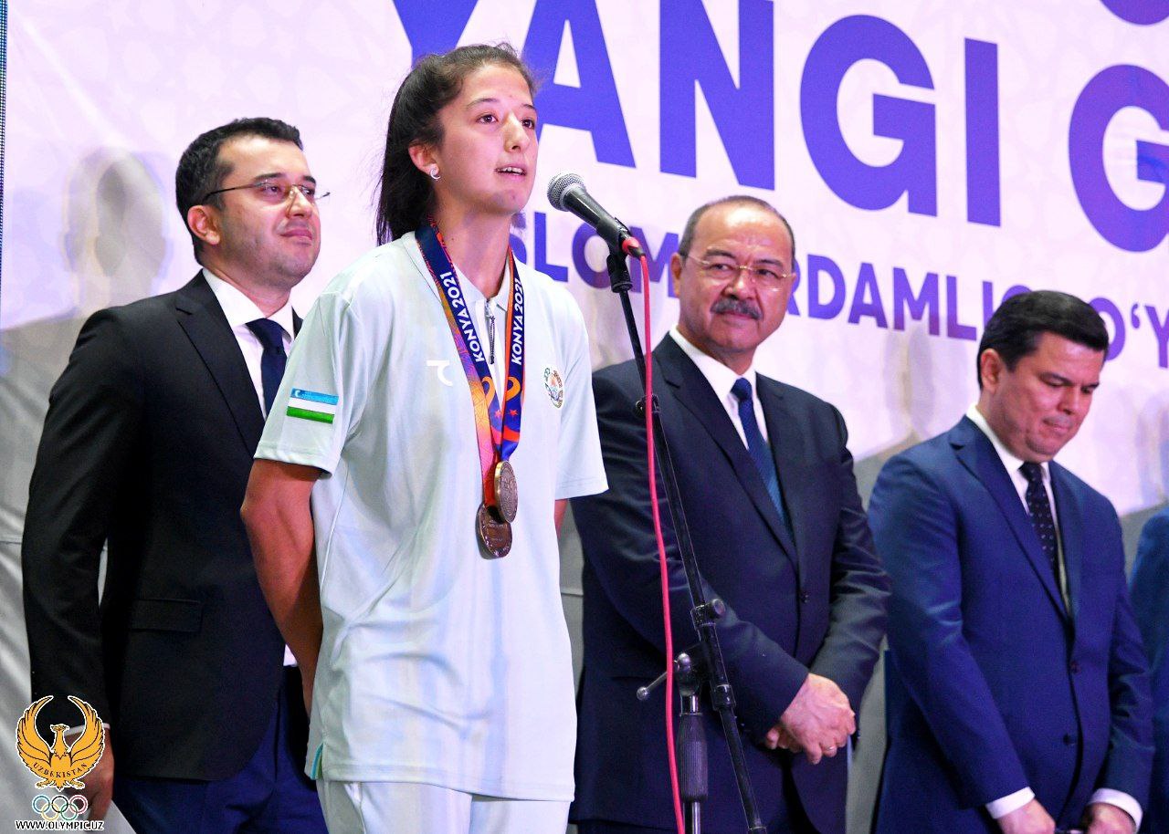 В свою очередь, от имени наших спортсменов выступили победитель соревнований по дзюдо Музаффар Турабоев и чемпионка по лёгкой атлетике Шарифа Давронова, от имени наставников-главный тренер сборной Узбекистана по тяжёлой атлетике Бахром Мендибоев. Они в свою очередь, остановились на том, что за этими победами стоит то высокое внимание, которое уделяется уважаемым Президентом и государством спорту. Выступившие на мероприятии пообещали достойно защищать честь Родины на международной арене, и в дальнейшем оправдывая оказанное им доверие.