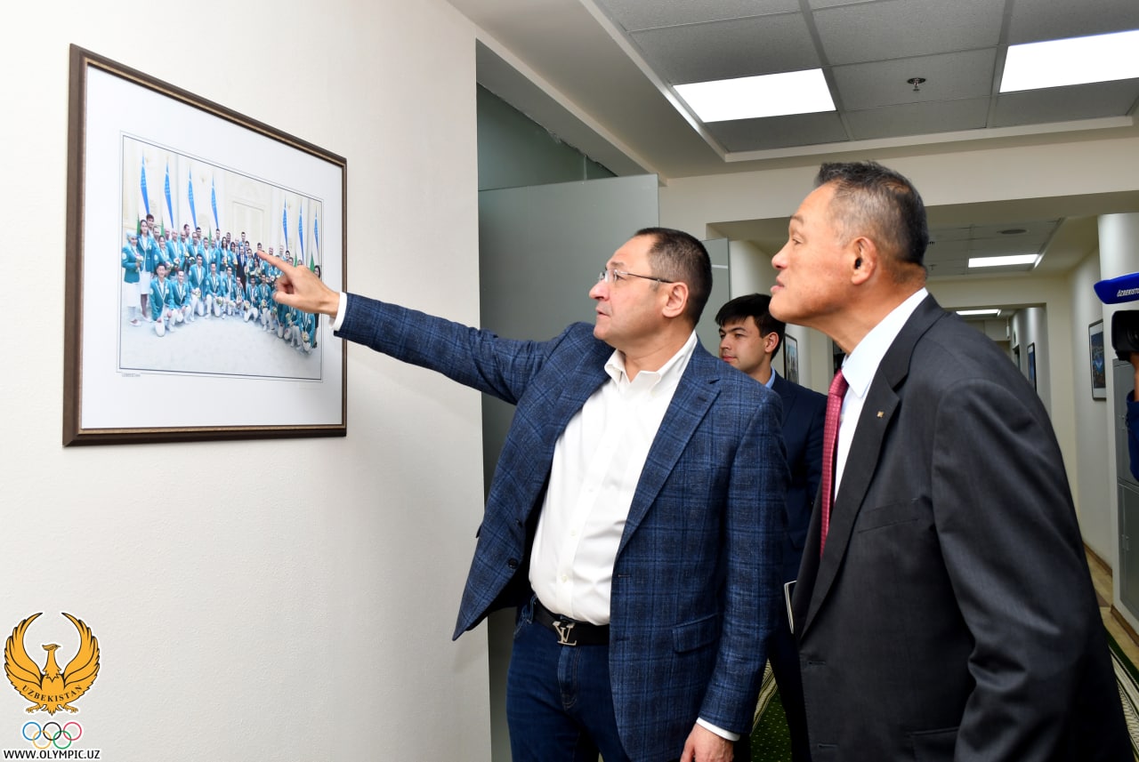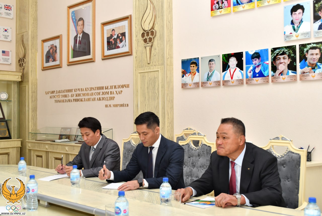 Сначала господин Ямашита ознакомился с деятельностью НОК Узбекистана. После этого стороны провели встречу на тему развития взаимовыгодных отношений. На мероприятии состоялся обмен мнениями по таким вопросам, как дальнейшее укрепление спортивных связей Узбекистана и Японии, организация учебно-тренировочных сборов с участием сборных команд обеих стран в рамках подготовки к крупным соревнованиям, в частности, к Азиатским и Олимпийским играм, чемпионатам мира, обмен последними достижениями в области спортивной медицины.