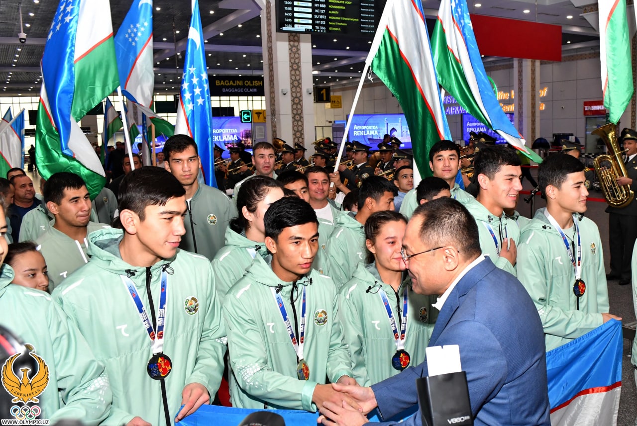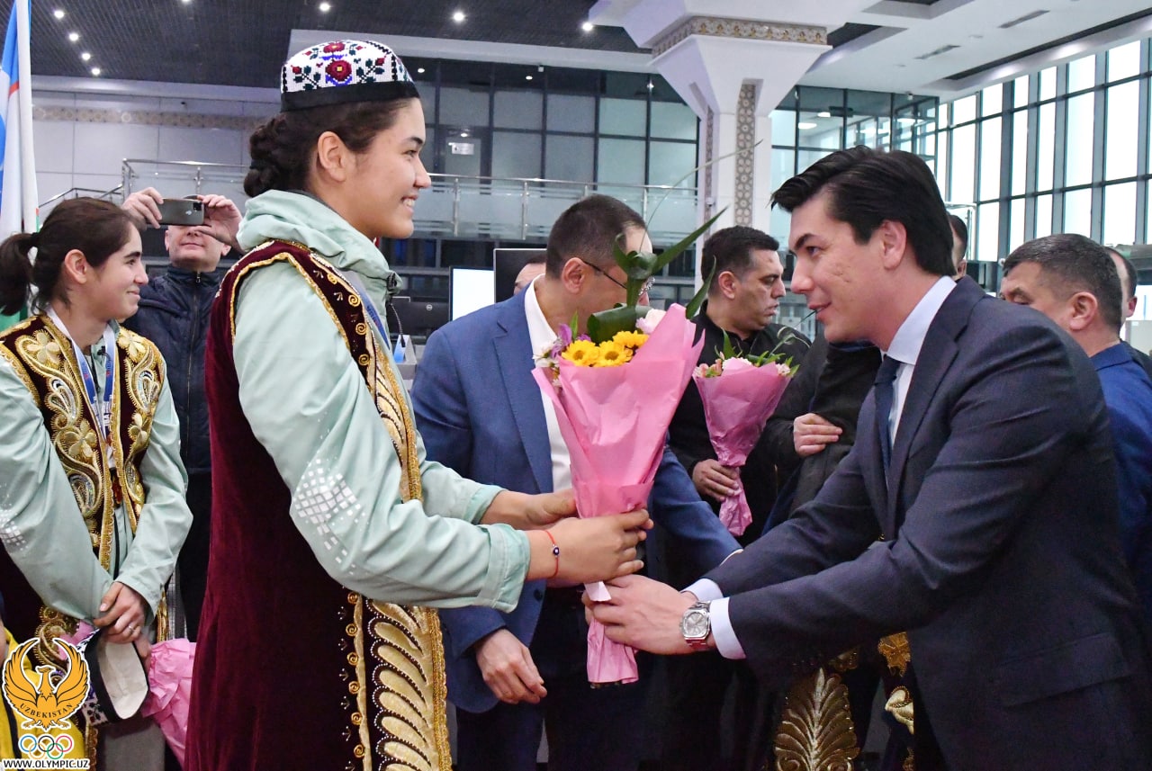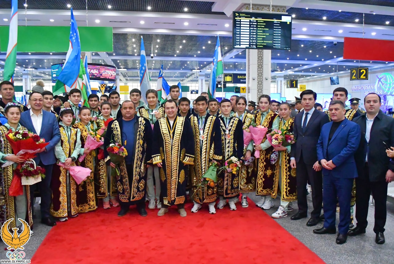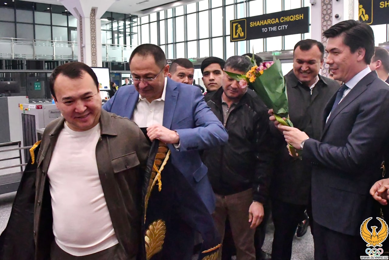 В Ташкентском международном аэропорту имени Ислама Каримова команду встретили сотрудники Министерства развития спорта во главе с Адхамом Икрамовым, Генеральный секретарь НОК Ойбек Касимов, заместитель председателя Комитета, первый заместитель председателя Федерации бокса страны Сакен Полатов, близкие и родные спортсменов.
