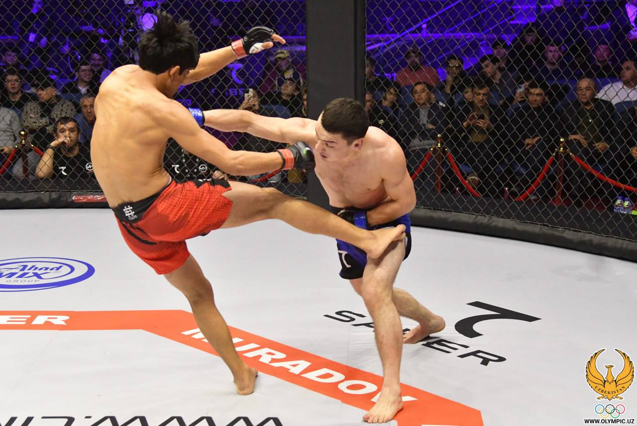 - 70 кг: Азизбек Исраилов (Узбекистан) - Бобур Уринбоев (Узбекистан); - в третьем раунде приёмом гильотин;
