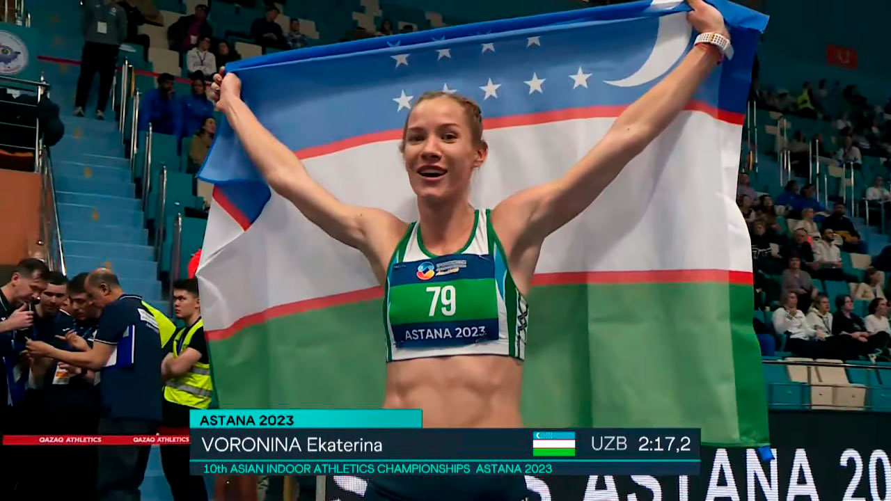 Член сборной Узбекистана по лёгкой атлетике Екатерина Воронина стала автором первой золотой медали сборной нашей страны на чемпионате Азии в закрытых помещениях в Казахстане. Наша соотечественница, участвовавшая в соревнованиях по пятиборью, набрала 4386 очков.