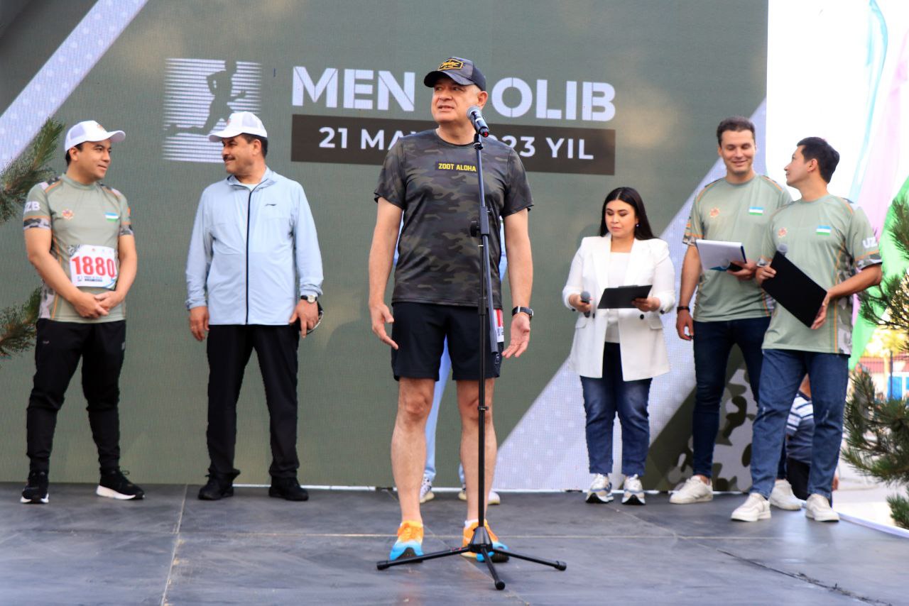 Сегодня в Ташкенте состоялся военно-патриотический массовый забег “Мен голиб” (Я победитель) с участием представителей Вооруженных сил и силовых структур Узбекистана, курсантов военных учебных заведений, спортсменов-любителей и профессионалов. Ранним утром около 2000 сторонников здорового образа жизни собрались на территории спортивного комплекса “Хумо Арена” для участия в беге на 3 км и 10 км.