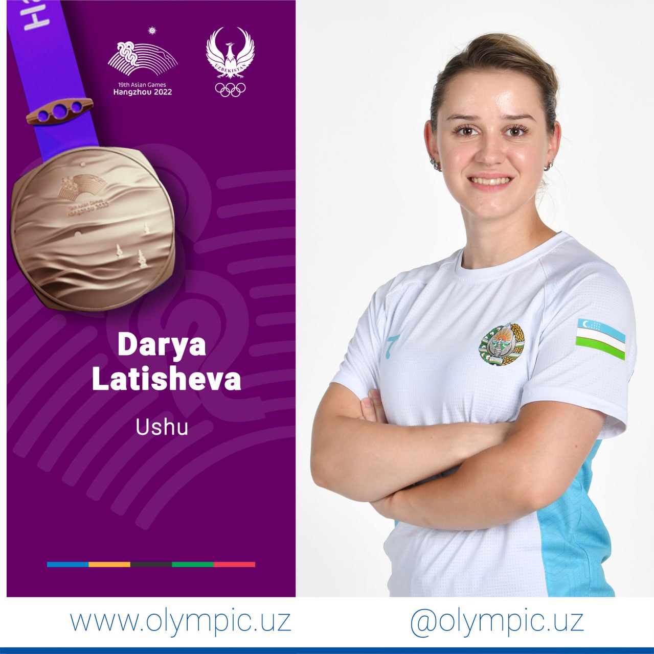 Представительница сборной Узбекистана по ушу Дарья Латышева пополнила копилку нашей делегации ещё одной медалью. По итогам программ нанкуан и нандао узбекская спортсменка завоевала бронзовую медаль, уступив представительницам Китая и Малайзии. Это вторая медаль на Азиатских играх для Дарьи. Наша соотечественница становилась серебряным призёром Азиады 2018 года.