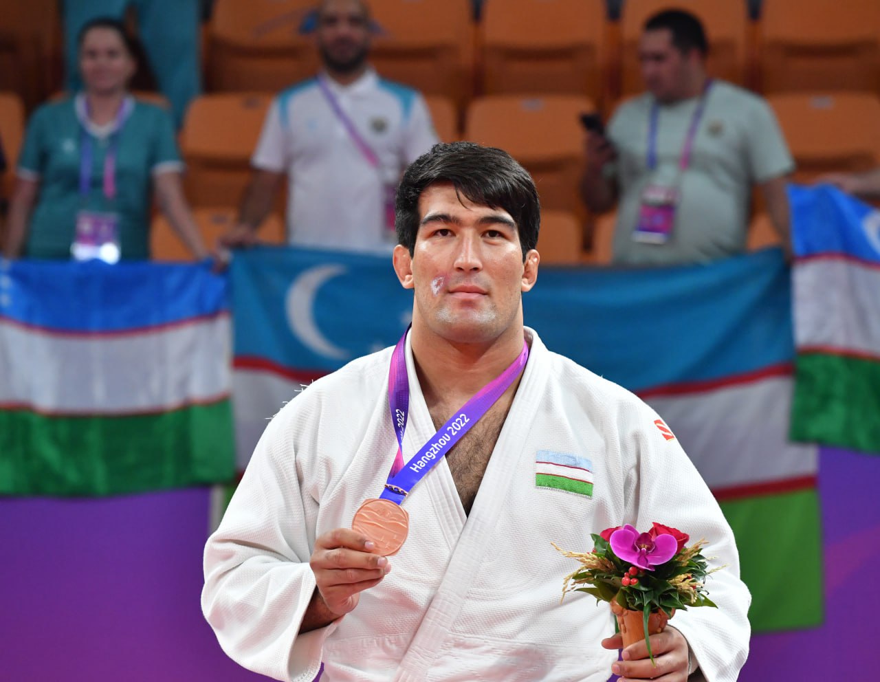Сборная Узбекистана по дзюдо завершила индивидуальные соревнования на высокой ноте. Отечественные единоборцы заняли второе место в общекомандном зачёте после родины дзюдо - Японии. В активе узбекских дзюдоистов 3 золотые, 1 серебряная и 4 бронзовые медали. Несомненно, в это немалый вклад внесли и спортсмены, которые поднялись на пьедестал почёта сегодня. Стоит отметить, что на Ханчжоу-2022 дзюдоистами был обновлён лучший результат как по качеству, так и по количеству завоёванных наград на Азиатских играх. Предлагаем вашему вниманию моменты, запечатлённые в объективах фотокамеры:
