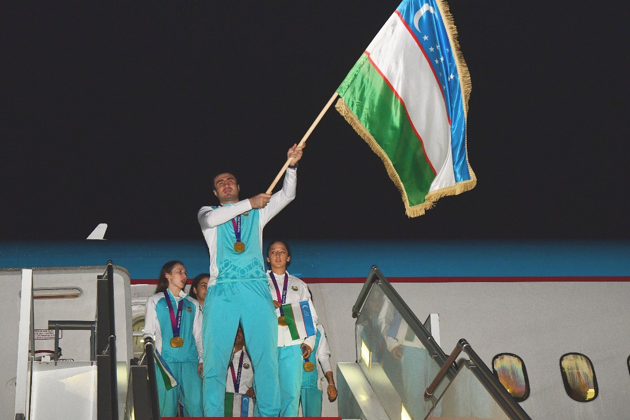 Делегация Узбекистана, успешно принявшая участие в XIX летних Азиатских играх, состоявшихся в китайском городе Ханчжоу с 23 сентября по 8 октября, была встречена торжественно. Наши соотечественники прибыли на Родину на специальном чартерном рейсе, организованном со стороны государства.