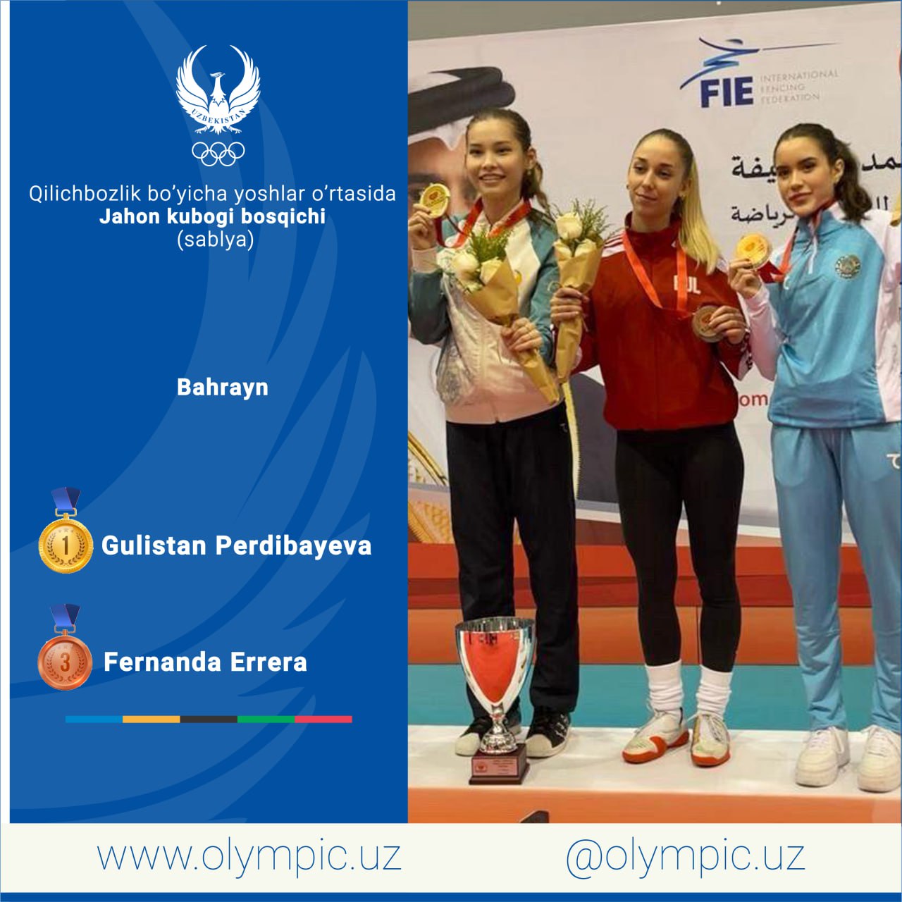 Соревнования по сабле проходили в Бахрейне. Победительница Азиатских игр в Ханчжоу Гулистан Пердибаева смогла выступить успешно и записать золотую медаль в свой актив. Также, ещё одна героиня Азиады - Фернанда Эррера завоевала бронзу. Сегодня наши девушки выступят и в командном направлении.