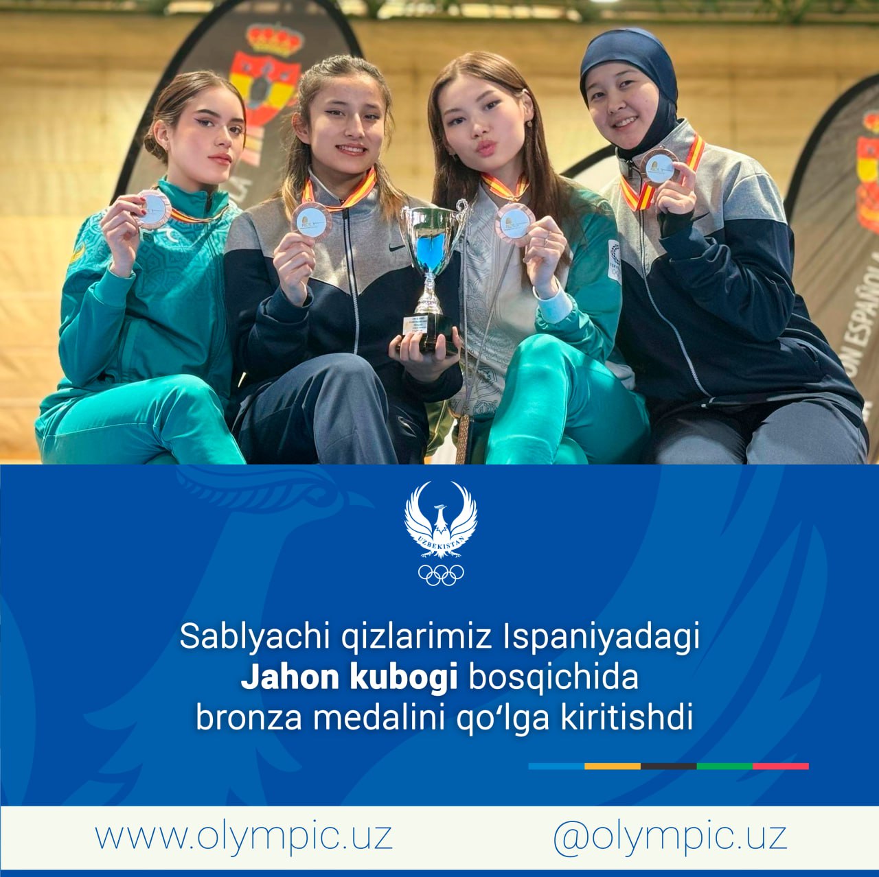 Минувшая неделя завершилась успешно и для наших молодых саблисток. В этапе Кубка мира в Испании, фехтовальщицам Узбекистана удалось занять третье место в командной программе.