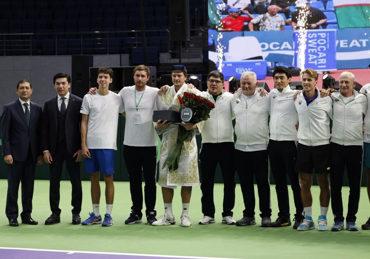 Денис Истомин провёл показательный прощальный матч против узбекского молодого теннисиста Амира Милушева. После этого на корт вышли Министр спорта Республики Узбекистан Адхам Икрамов, Генеральный секретарь НОК Ойбек Касимов, председатель Федерации тенниса страны Алишер Мирсоатов, Генеральный секретарь Федерации Ирода Туляганова.