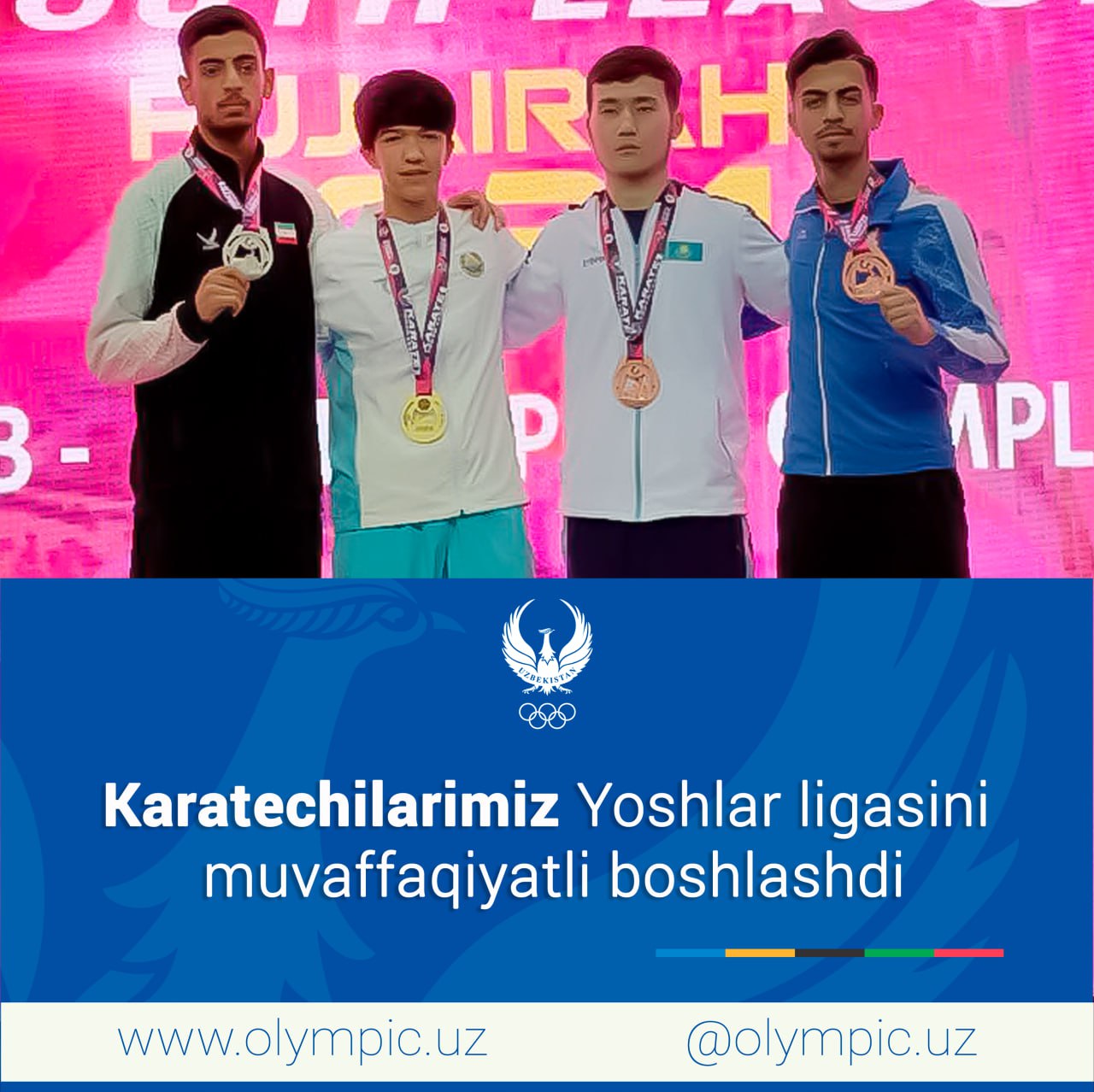 Молодые каратисты добавили в копилку нашей делегации 1 золото, 1 серебро и 3 бронзы. Данная лига организована среди спортсменов в категории U-21. Однако по решению тренерского штаба, в данном турнире в основном участвуют атлеты, которые готовятся к летним юношеским Азиатским играм Ташкент-2025 и летним юношеским Олимпийским играм Дакар-2026. Имена наших каратистов, которые в первый день поднялись на пьедестал почёта: