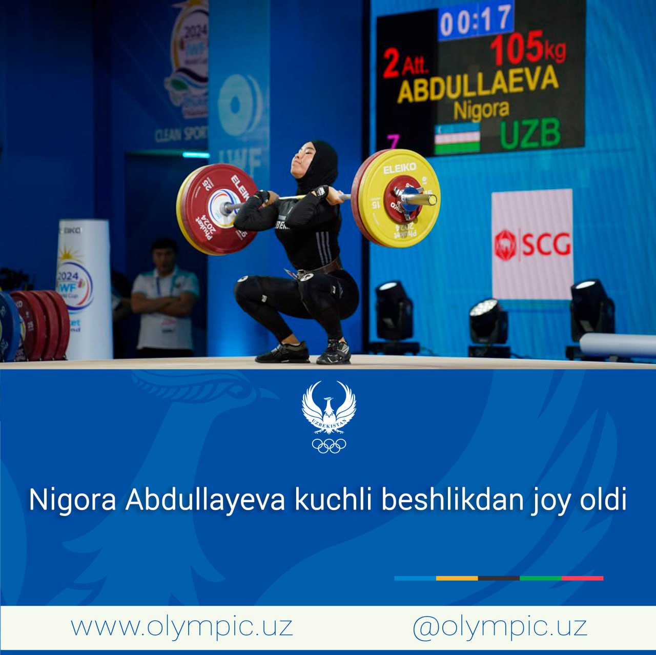 Как вам известно, в Таиланде проходит Кубок мира по тяжёлой атлетике, где принимают участие и узбекские спортсмены. Наша представительница Нигора Абдуллаева (-55 кг) установила показатель 188 кг по итогам двоеборья (рывок 83 кг + толчок 105 кг) и завершила соревнование на 5-месте.