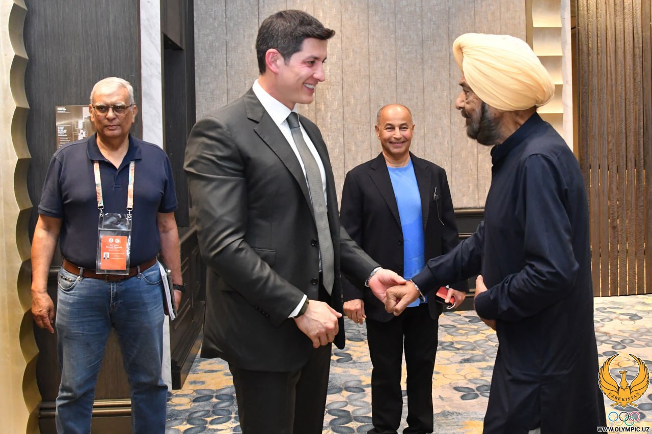 Завтра в столице Таиланда состоится 43-я Генеральная Ассамблея Олимпийского совета Азии (ОСА). Делегация Узбекистана во главе с вице-президентом ОСА Отабеком Умаровым в настоящее время находится в Бангкоке и принимает участие в ряде встреч с официальными лицами. Первая из них состоялась с действующим главой ОСА Раджей Сингх и Генеральным директором ОСА, президентом Всемирной федерации водных видов спорта (World аquatics) Хусейном Аль Мусалламом.