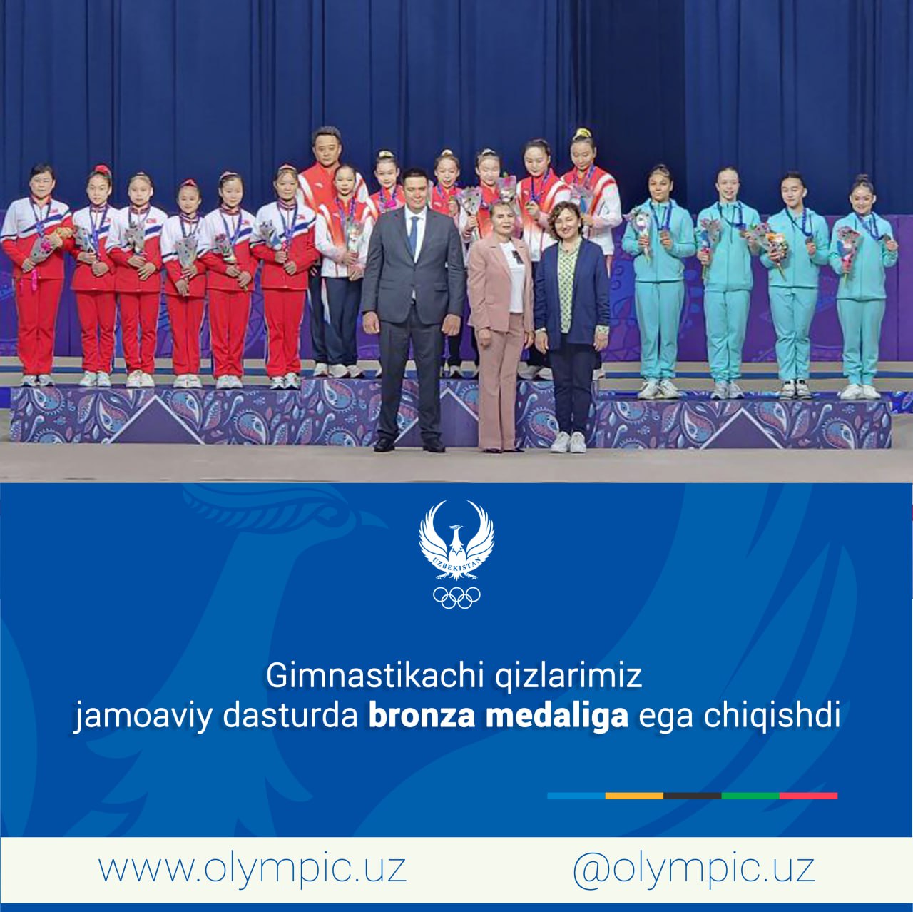 Ранее нами сообщалось, что в Ташкенте стартовал чемпионат Азии среди женщин по спортивной гимнастике. В первый день турнира наши сеньоры удостоились бронзовой медали в командном многоборье.