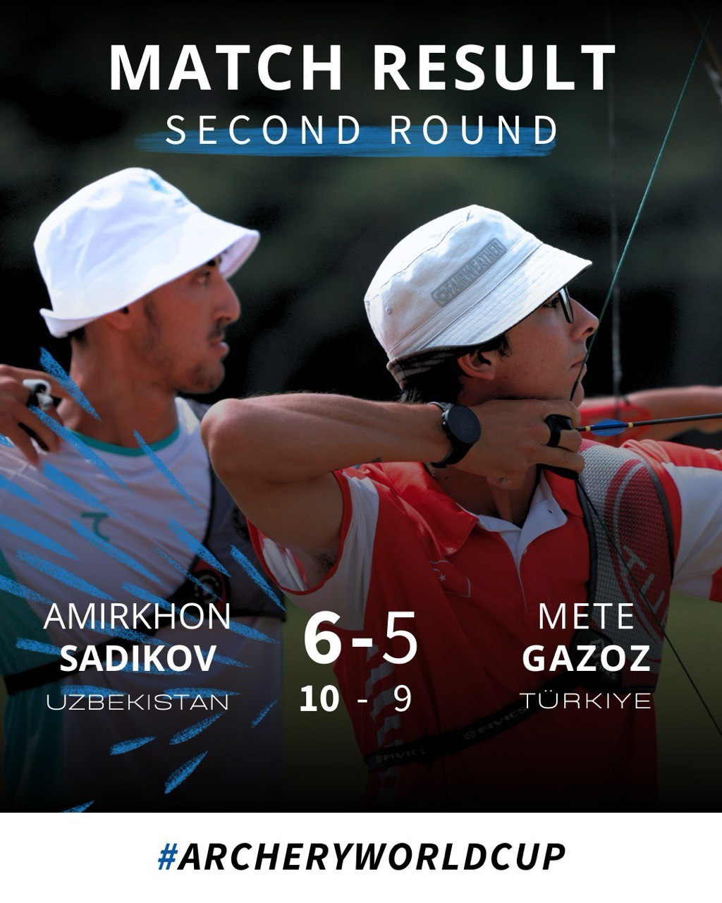 Во втором этапе наш соотечественник преодолел Олимпийского чемпиона Мете Газоза (Турция). А в третьем этапе соперником Содикова был именитый французский лучник - Баптист Аддис. Однако, в перестрелке узбекский атлет упустил возможность.