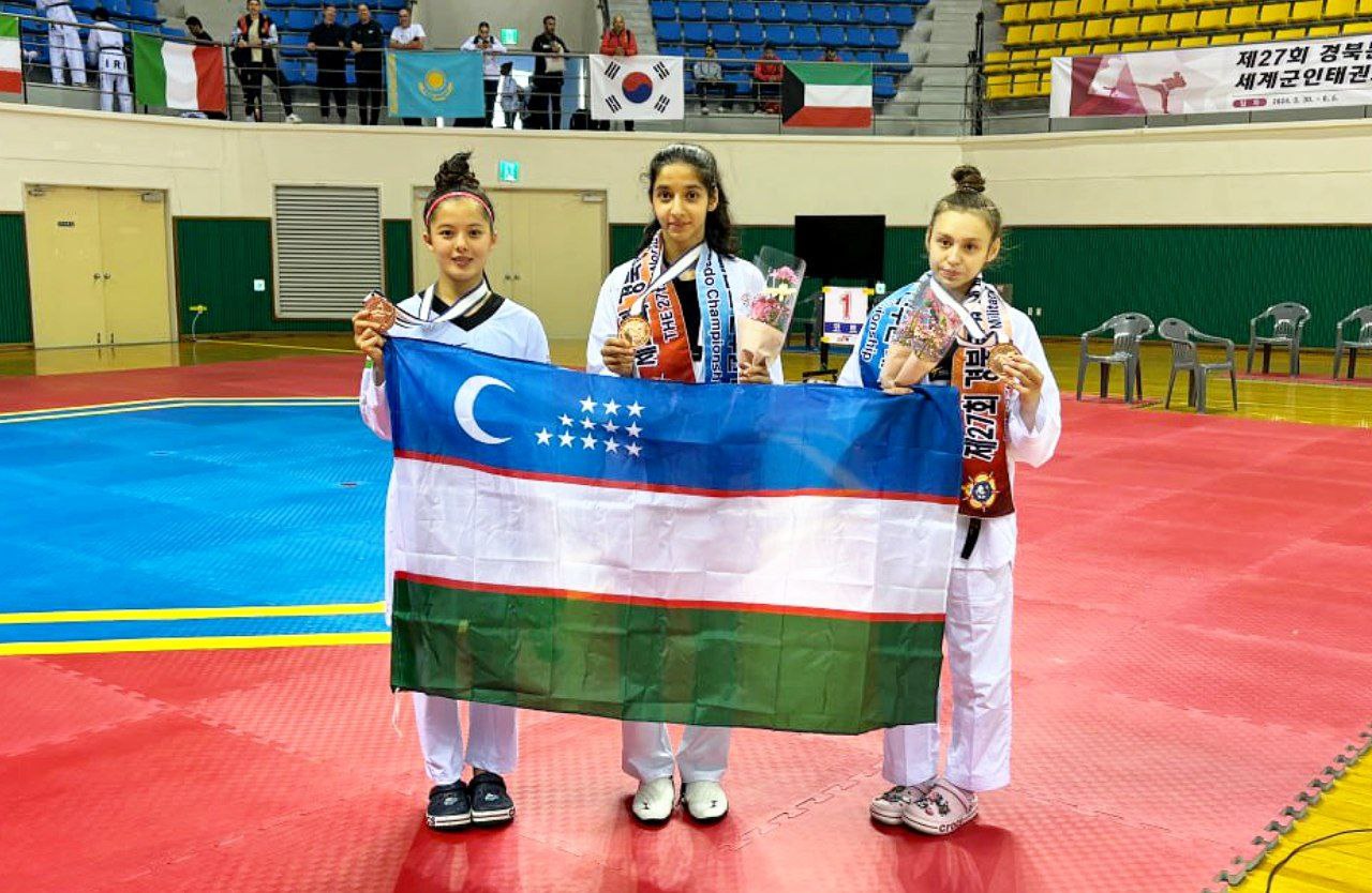 С 1 по 3 июня в Мунгёнг (Южная Корея) состоялся чемпионат мира по таэквондо WT среди военных. В соревнованиях, в которых приняли участие 300 спортсменов более чем из 20 стран, сборная Узбекистана показала отличный результат. По итогам бескомпромиссных состязаний узбекские единоборцы завоевали 12 медалей (6 золотых, 2 серебряных и 4 бронзовых). Благодаря этому результату и мужская, и женская сборные нашей страны стали первыми в общекомандном зачёте. Медалисты: