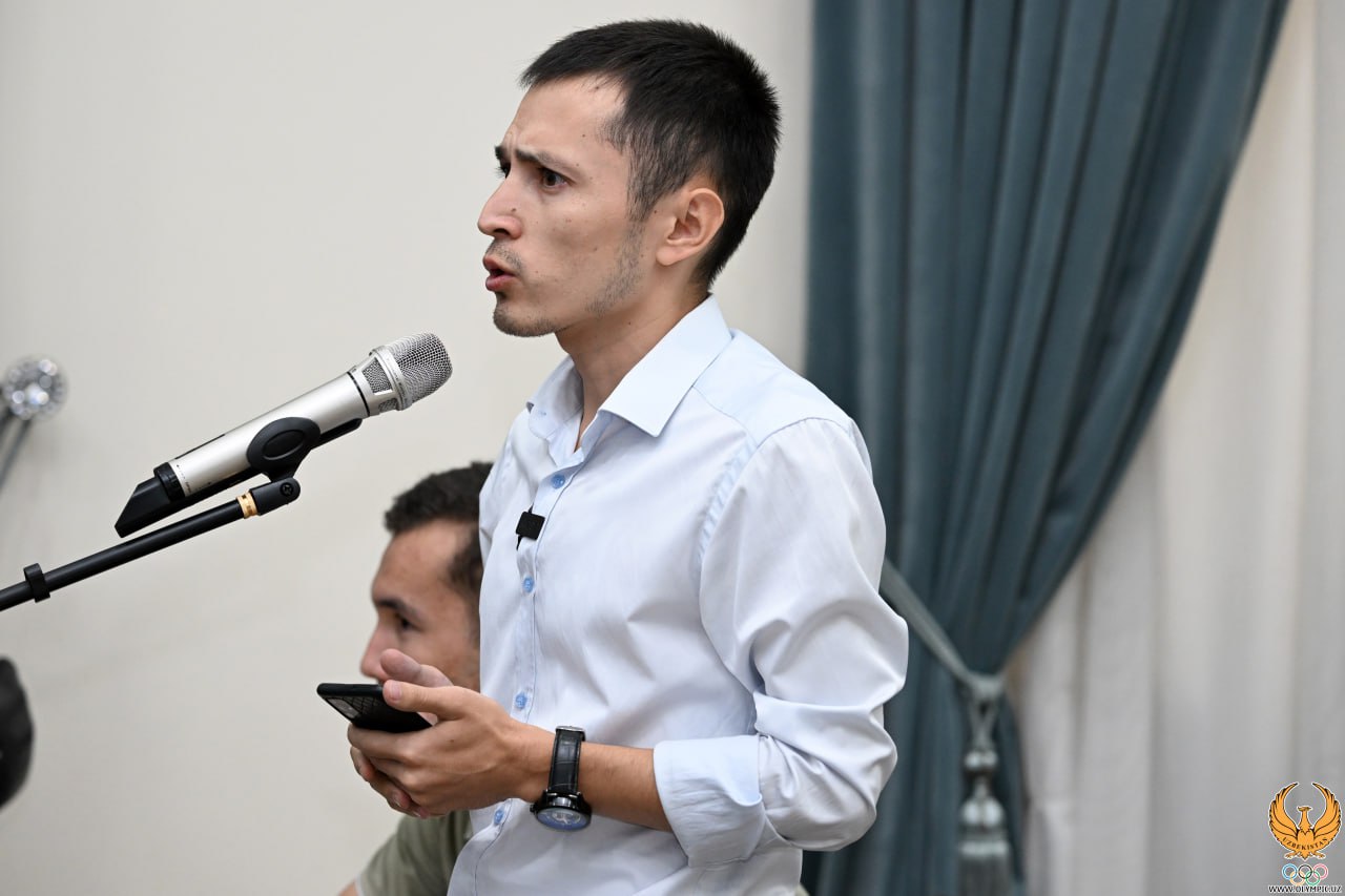 Вначале конференции Шахрулло Шарипович от имени всех официальных лиц поздравил присутствующих с 33 летием независимости Республики Узбекистан. Заместитель Министра отметил, что делегация Узбекистана своими успехами и историческими результатами на Играх в Париже очень порадовали и восхитили весь узбекский народ. Также, Ойбек Омилович добавил, что все эти результаты были достигнуты благодаря непосредственной поддержке Главы Государства и нашей страны, и что вчера на приеме Президента, были обозначены новые цели.