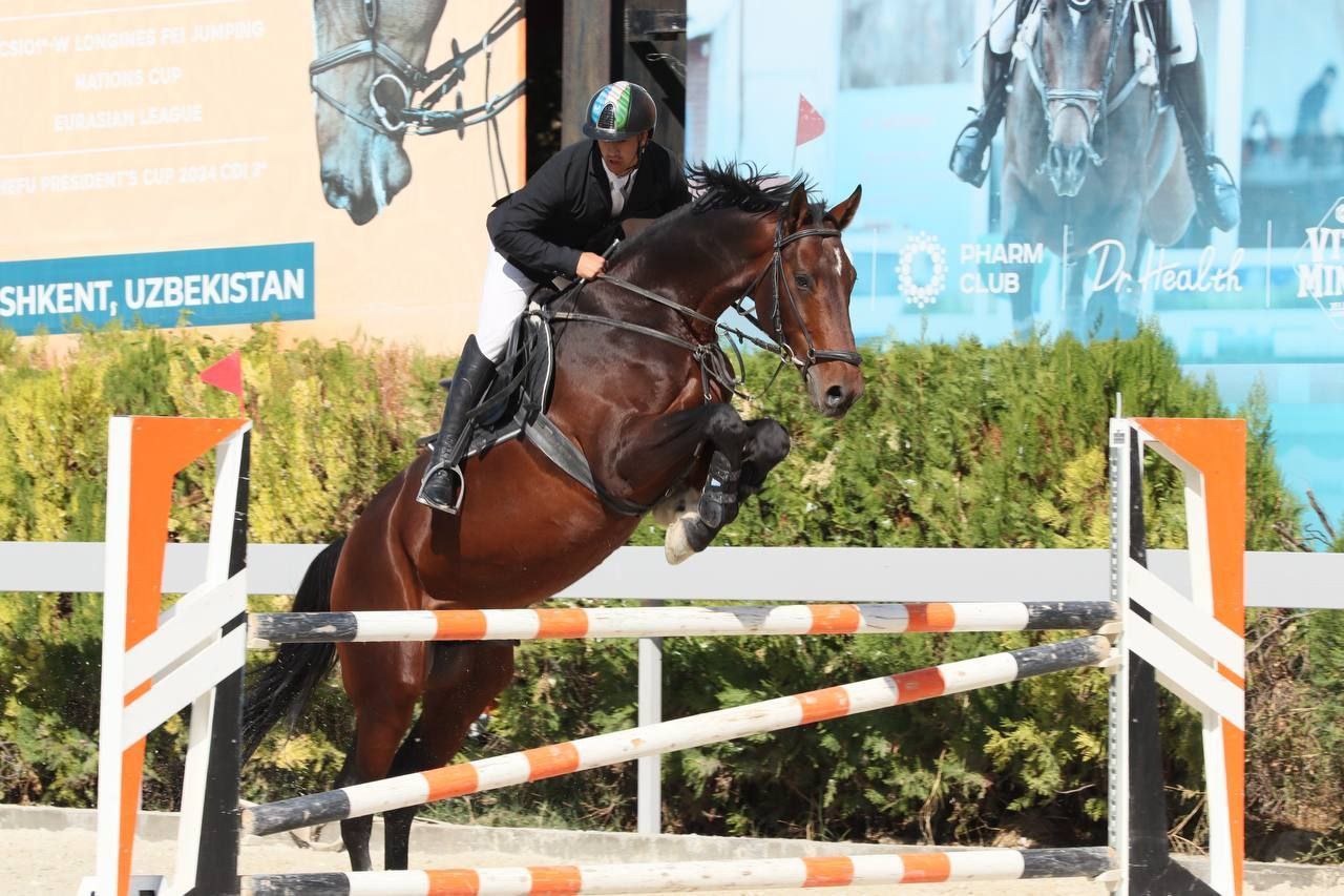 В минувшей неделе отечественные всадники приняли участие в нескольких престижных соревнованиях. В частности, представитель сборной Узбекистана Умиджон Камилов (на лошади по кличке "Karissina") в финале Кубка "Максима Парк" занял первое место в маршруте с высотой препятствий 115 см.