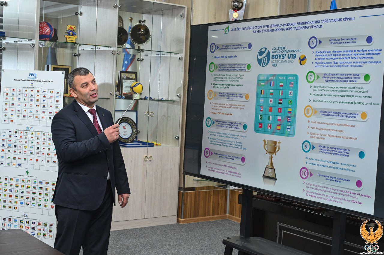 На этой основе официальные лица во главе с Отабеком Умаровым ознакомились с презентацией Федерации волейбола страны, посвящённой планам на ближайшие 4 года. Руководство НОК встретил заместитель Министра внутренних дел, генерал-майор, первый заместитель председателя Федерации волейбола Узбекистана Бекмурод Абдуллаев и дал общую информацию по подготовке к новому Олимпийскому циклу.