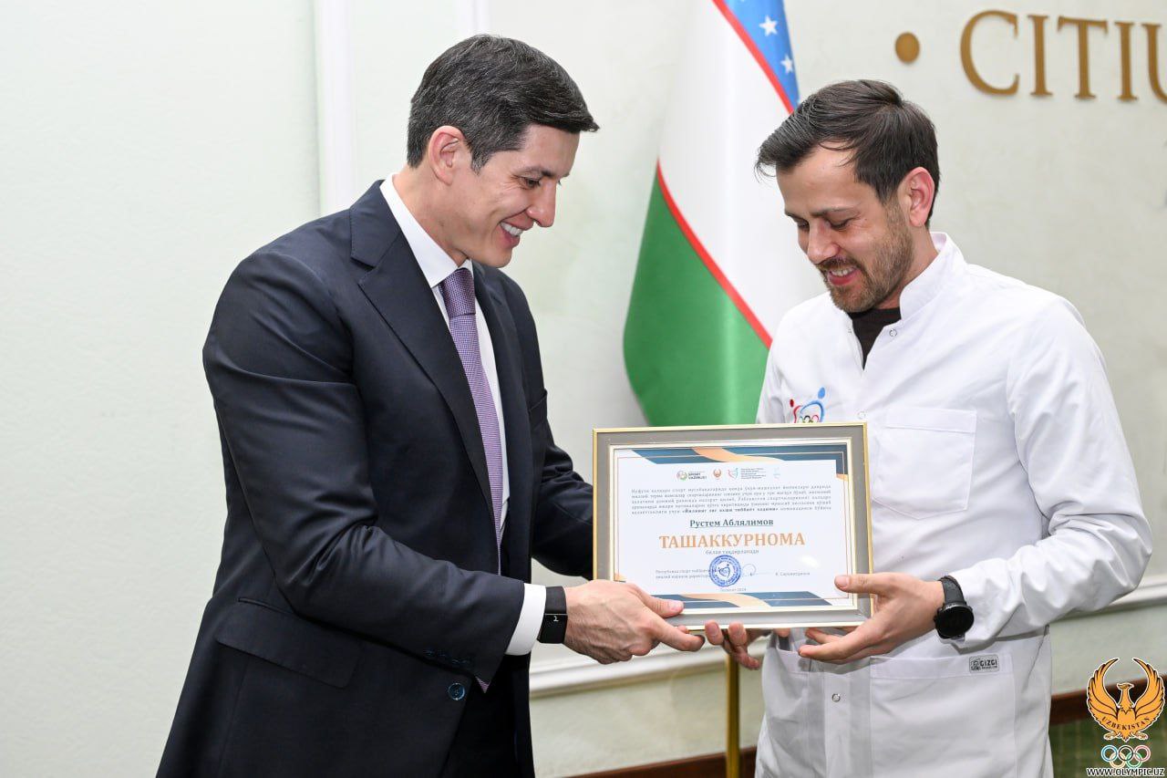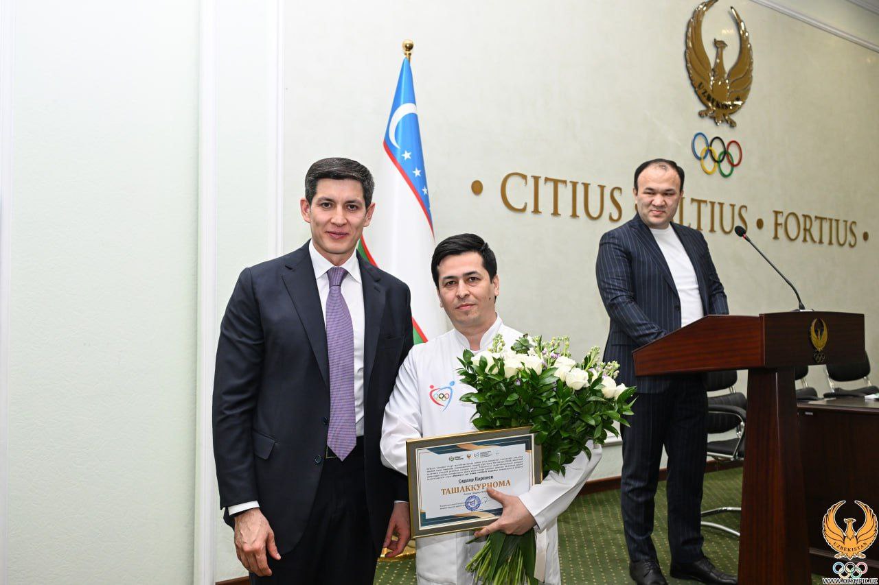 Первый заместитель председателя НОК, вице-президент Олимпийского совета Азии Отабек Умаров поблагодарил дружный коллектив Комитета и команду Медицинского центра за добросовестный подход к своей работе, за вклад в развитие отечественного спорта и Олимпийского движения нашей страны. Кроме того, на собрании были награждены сотрудники, отличившиеся особой активностью в течение года.