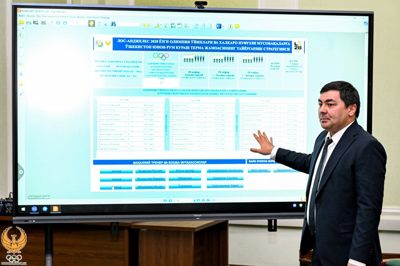 Далее Генеральный секретарь Ассоциации Шухрат Мамадалиев ознакомил с планом подготовки к летним Олимпийским играм Лос-Анджелес-2028. Он рассказал о формировании основного и резервного состава сборной в каждой весовой категории, существующих проблемах и недостатках. В частности, завоевание наибольшего количества лицензий в женской борьбе, повышение результатов отечественных греко-римских борцов на Олимпийских играх, а также, усиление внутренней конкуренции в борьбе вольного стиля.