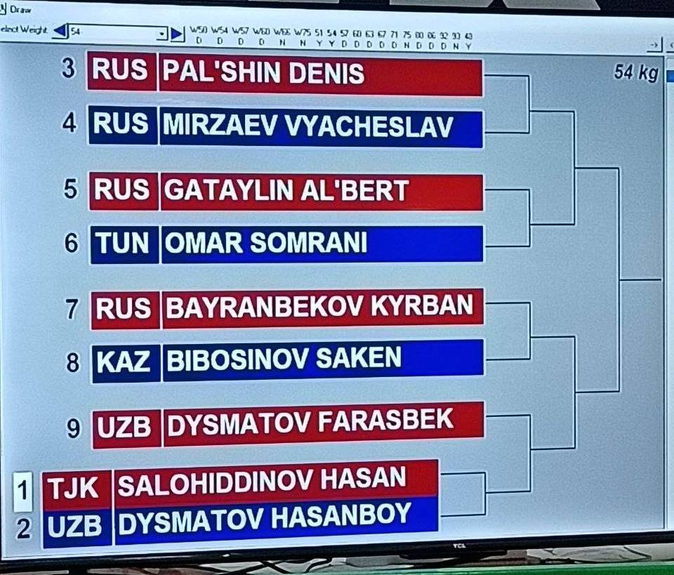 Хасанбой Дусматов в первом раунде встретится с представителем Таджикистана Хасаном Салоходдиновым. В случае победы "Профессора" его следующим соперником станет родной брат — Фарёзбек Дусматов. А победитель этой пары, возможно, сразится в полуфинале с Сакеном Бибосыновым из Казахстана.