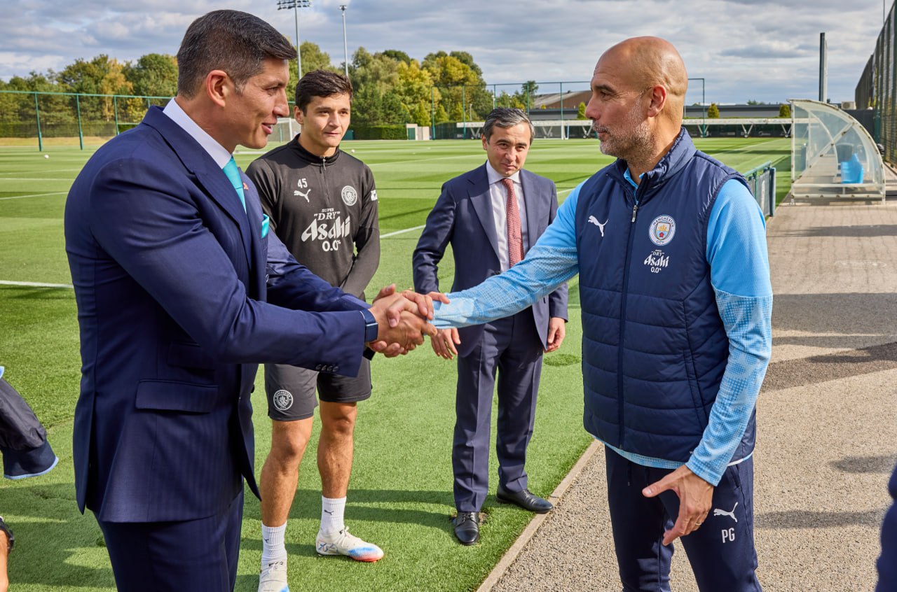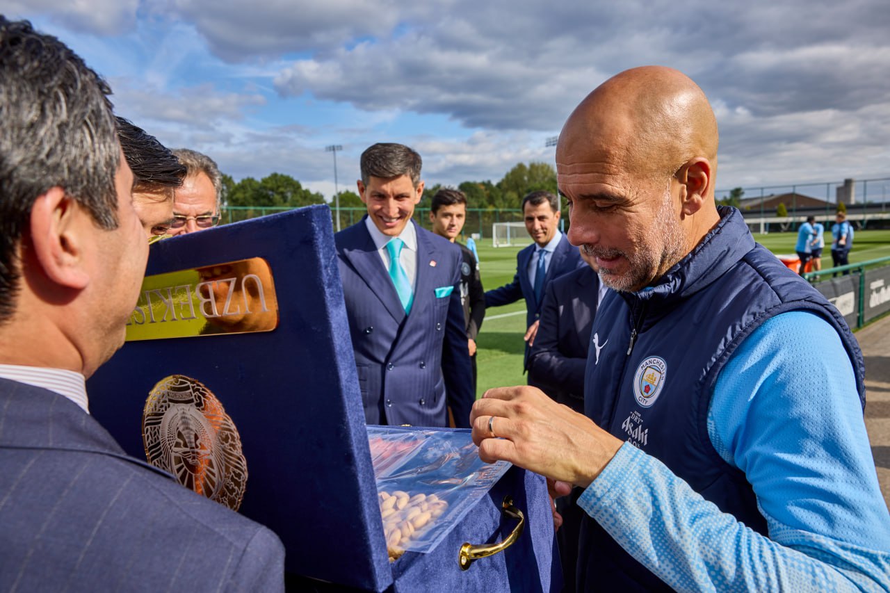 В завершение визита официальные лица посетили тренировочную базу "Манчестер Сити". Здесь же состоялась беседа с главным тренером, легендой мирового футбола Хосепом Гвардиолой, а также с защитником "горожан" и национальной сборной Узбекистана Абдукодиром Хусановым.