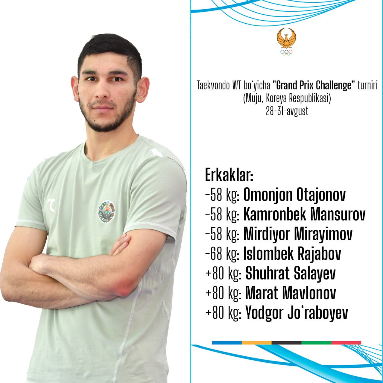 С 28 по 31 августа в городе Мужу (Республика Корея) пройдёт турнир по таэквондо WT «Grand Prix Challenge». Сегодня ночью сборная Узбекистана вылетела в Корею для участия в этих соревнованиях. По информации Ассоциации таэквондо нашей страны, команда выступит в следующем составе:
