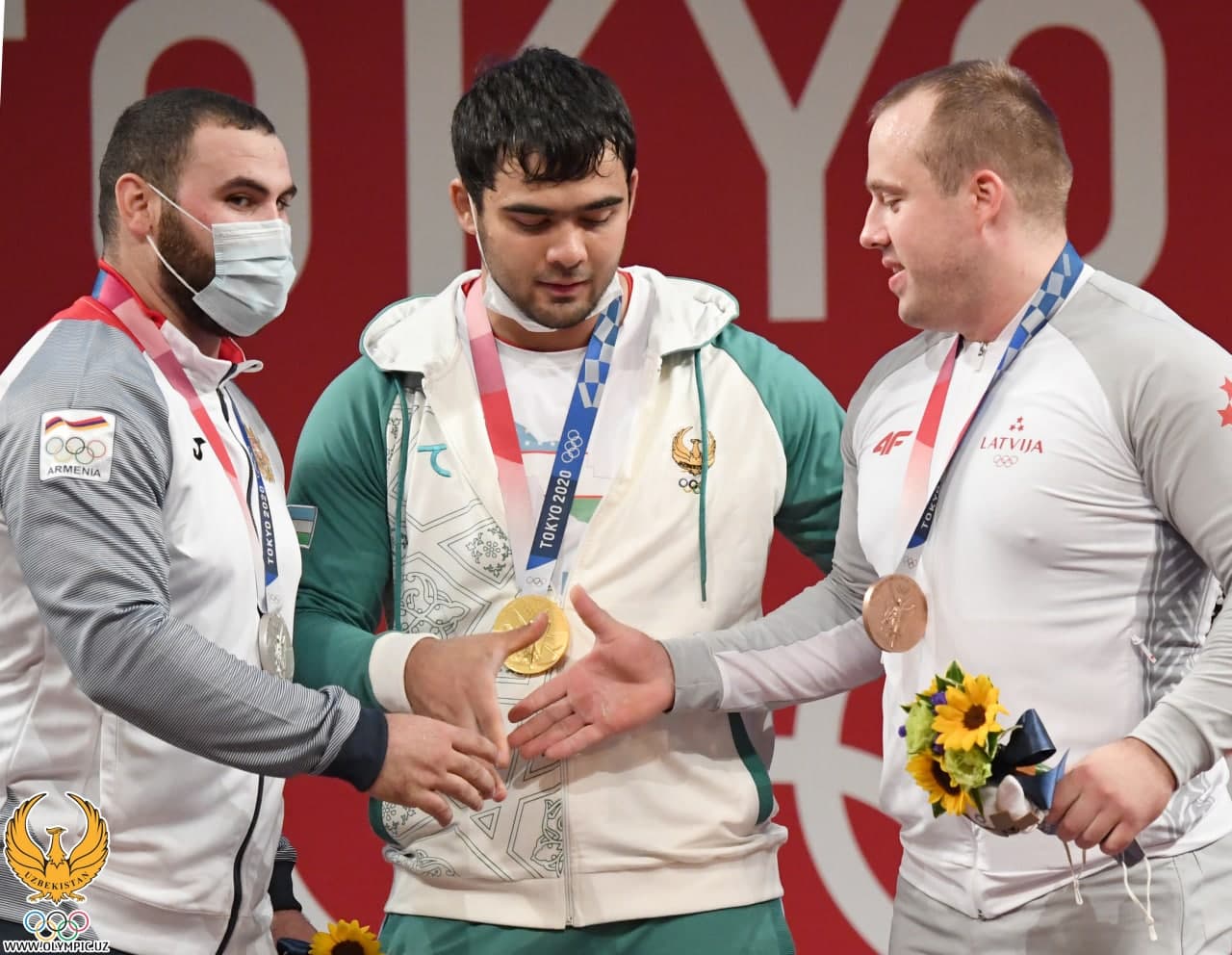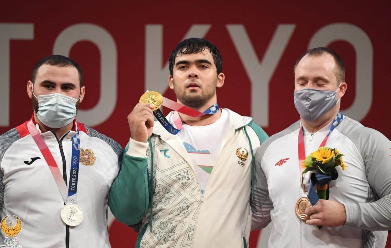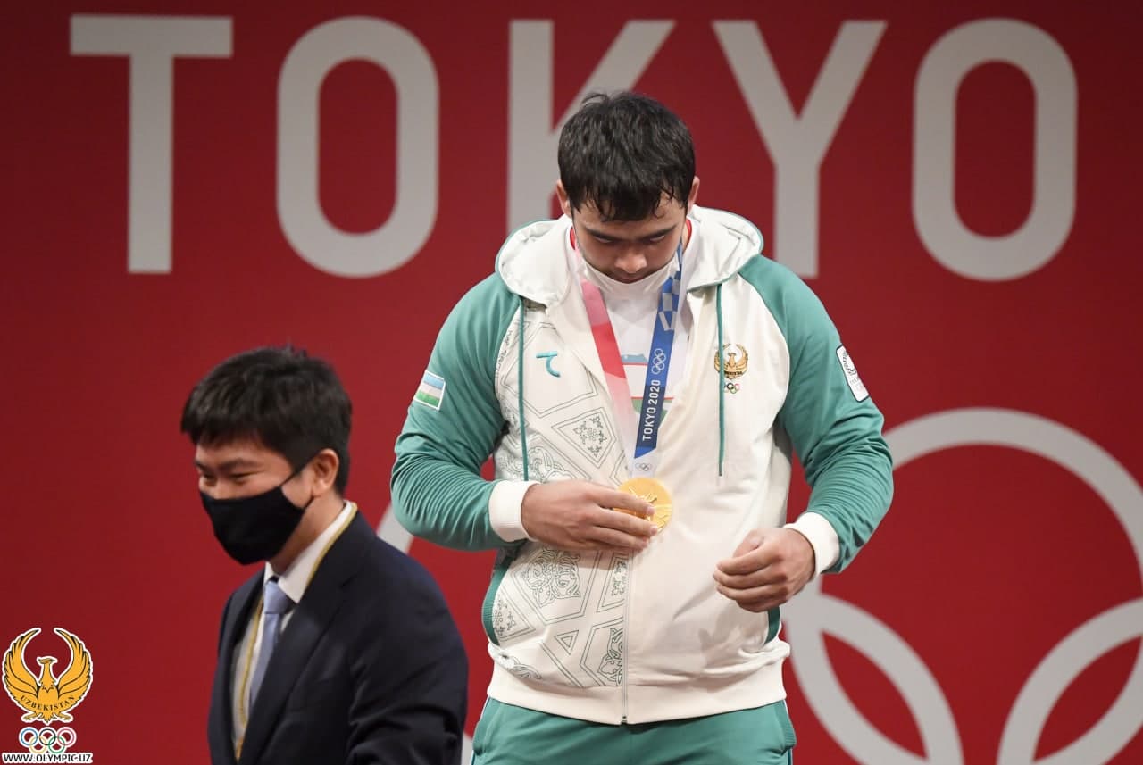Чемпион и рекордсмен Олимпийских игр Токио-2020 Акбар Джураев добавил в копилку сборной Узбекистана вторую золотую медаль. Это стало настоящим знаменательным событием для узбекского спорта и тяжёлой атлетики страны. Нашему тяжелоатлету удалось обновить Олимпийский рекорд в двух направлениях, а также, завоевать титул чемпиона. Успех Джураева очень порадовал и вдохновил каждого из нас. Фотографии с церемонии награждения героя дня: