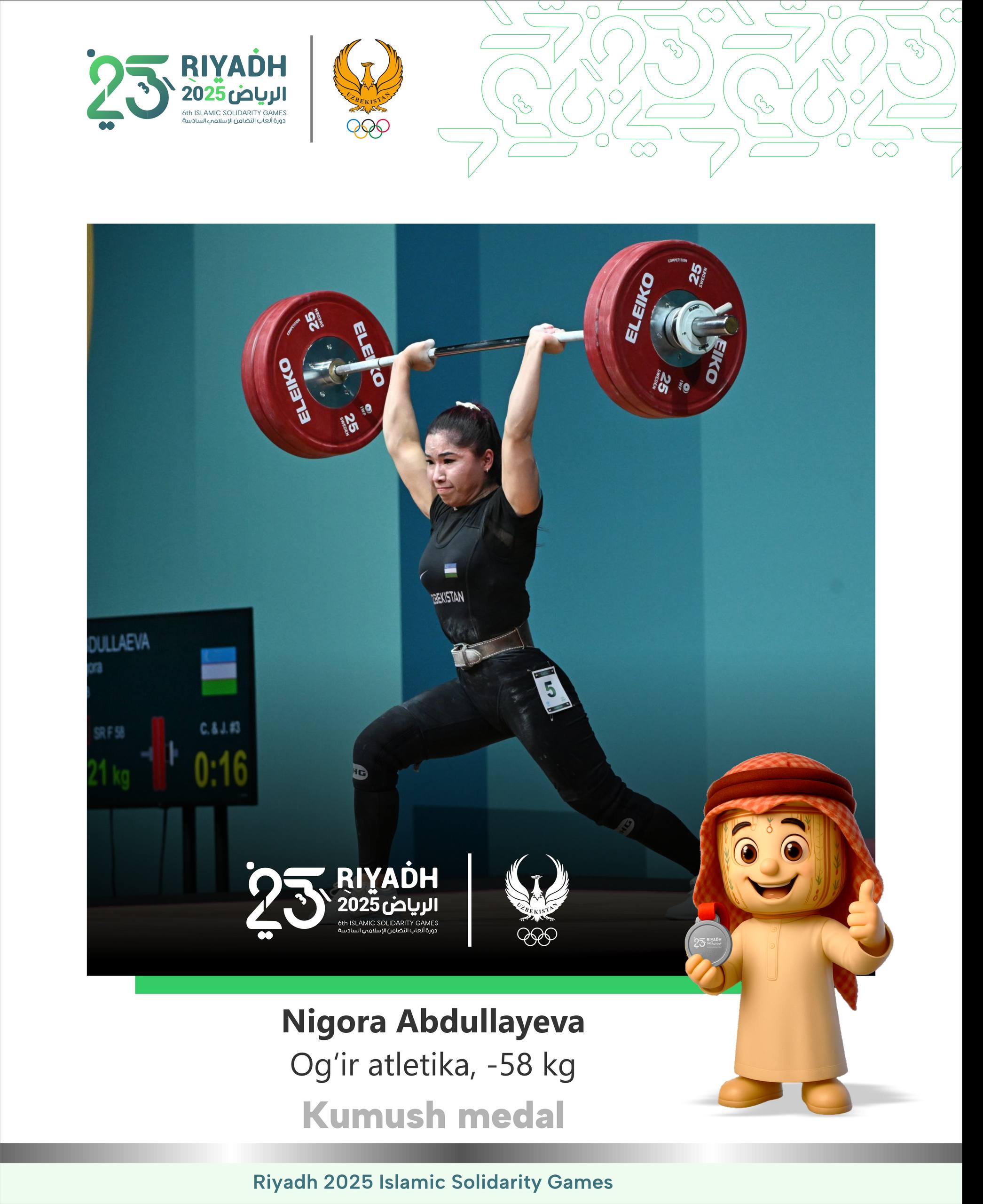 Наша талантливая тяжелоатлетка Нигора Абдуллаева завоевала ещё две серебряные награды на Играх Ислам…