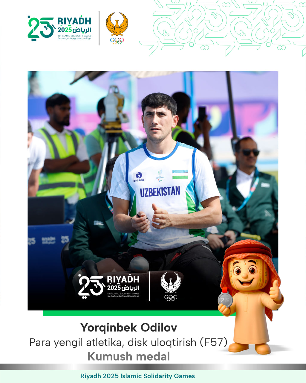 Член сборной Узбекистана по пара-лёгкой атлетике Ёркинбек Одилов вошёл в число призёров Игр исламско…
