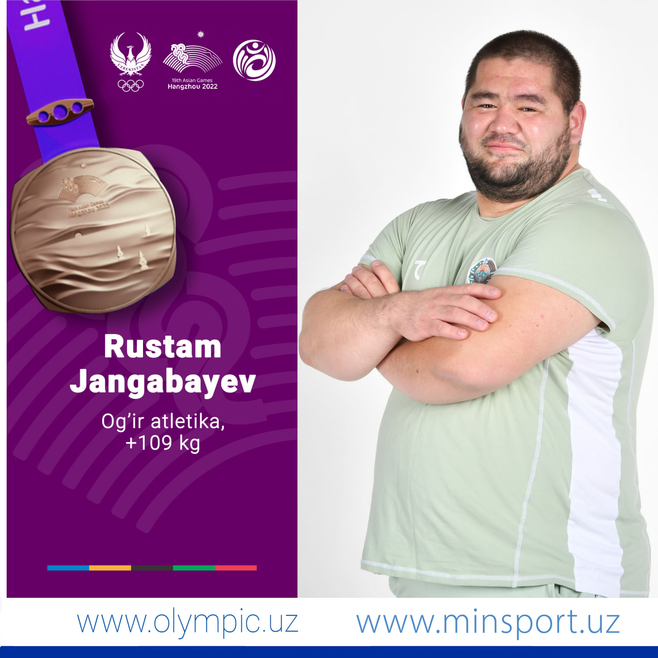 Член сборной Узбекистана по тяжёлой атлетике Рустам Джангабаев занял третье место. Выступая в весово...