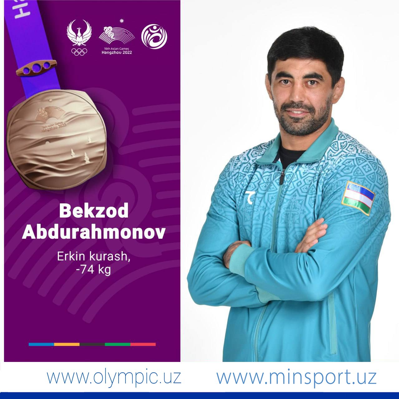 Член сборной Узбекистана по вольной борьбе Бекзод Абдурахманов завоевал свою третью медаль Азиатских...