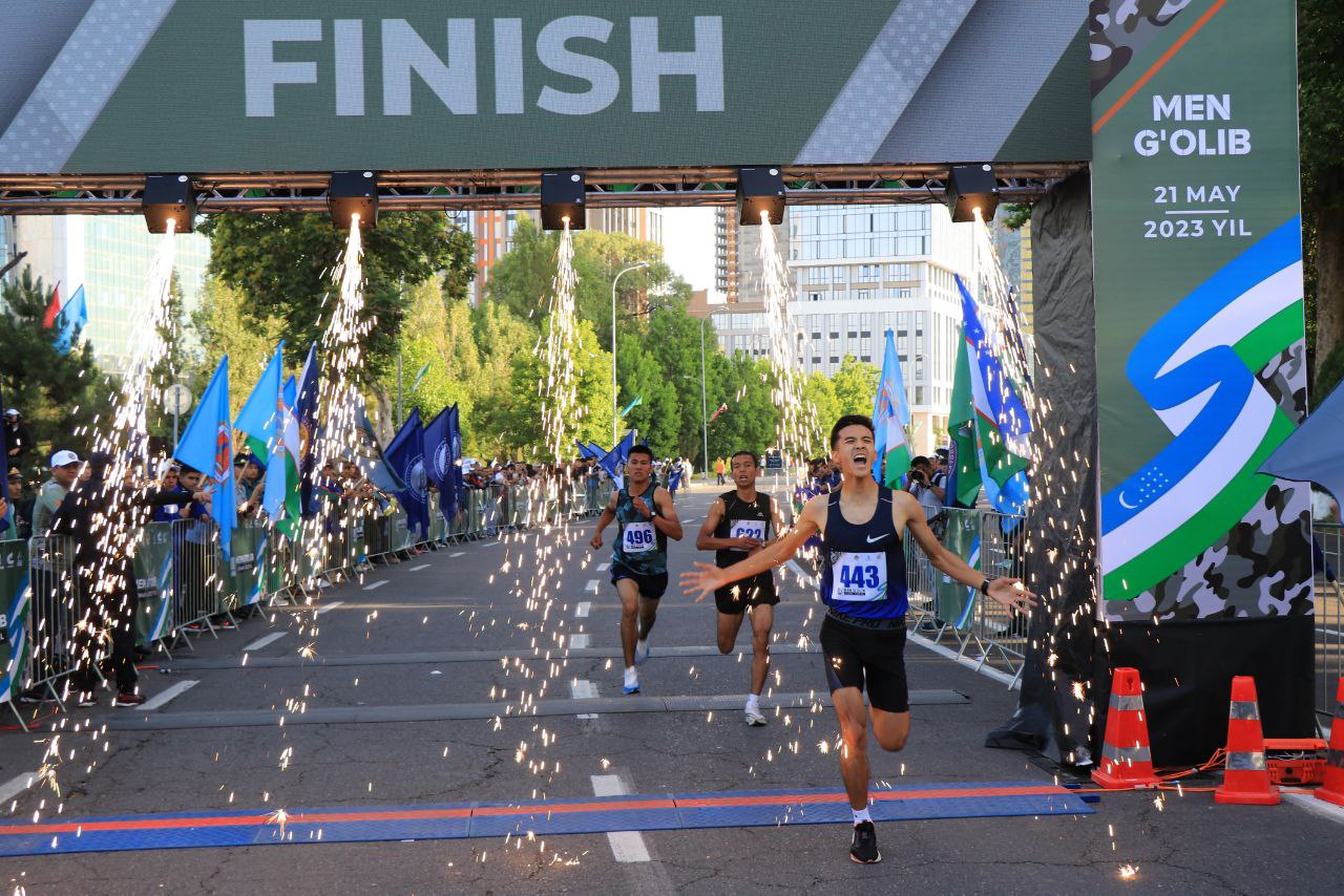Сегодня в Ташкенте состоялся военно-патриотический массовый забег “Мен голиб” (Я победитель) с участ...