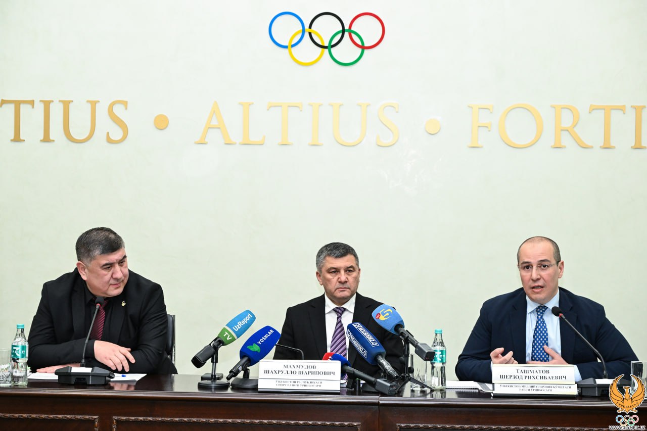Министр спорта Республики Узбекистан Адхам Икрамов и Генеральный секретарь НОК Узбекистана Ойбек К...