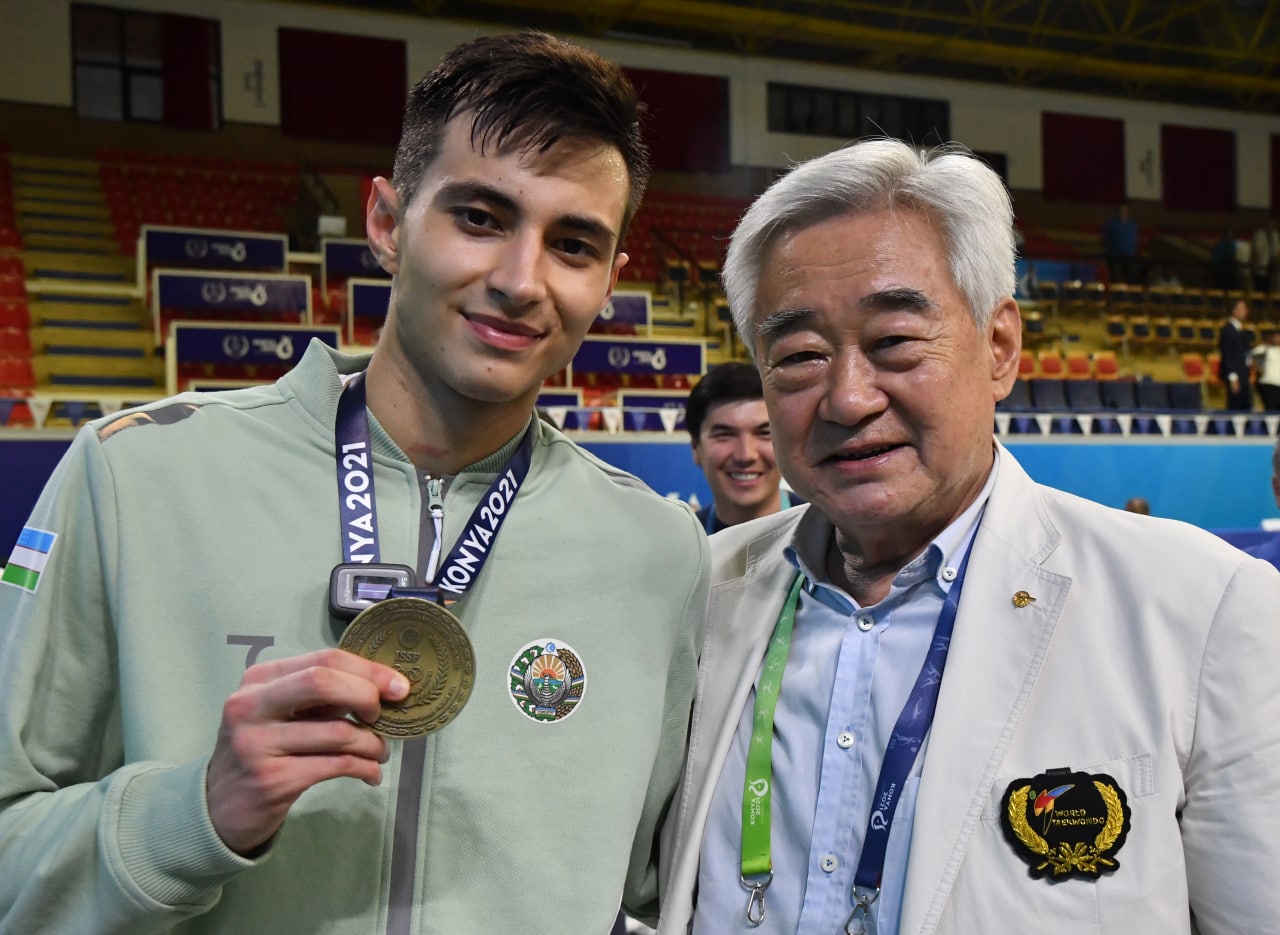 Таэквондо бўйича Конья-2021 Ислом бирдамлиги ўйинлари чемпиони Улуғбек Рашитовни тақдирлаш маросимига ҳатто Бутунжаҳон таэквондо федерацияси президенти Чунгвон Чойнинг ўзи ташриф буюрди. Рашитов ва Пулатов МОҚ раҳбарияти ва жамоадошларимиздан қутловларни қабул қилиб олишмоқда. Баракалла, йигитлар!