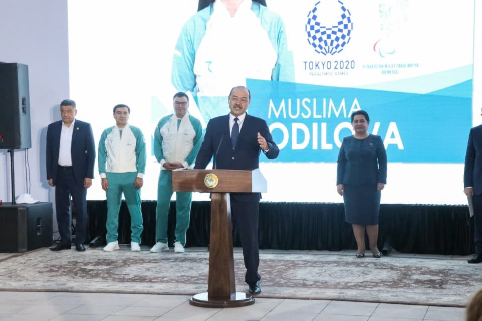 Тантанали маросимни Танзила Норбоева очиб берди. Танзила Камаловна сўз ўрнида Токиода бўлиб ўтадиган XVI ёзги Паралимпия ўйинларида уларга омад ва зафарлар тилаган ҳолда, юртимизга ёруғ юз билан қайтишларини, халқимиз, Президентимиз ишончларини оқлашлари учун бор маҳоратларини ишга солишга чақириб, ўзининг самимий тилакларини изҳор этди.