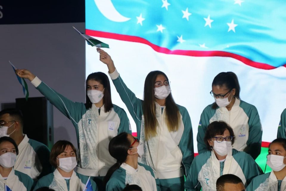 Шундан сўнг, Танзила Норбоева ва Азиз Абдуҳакимов давлат байроғини Миллий паралимпия қўмитаси раиси Мухторхон Ташходжаевга тантанали равишда топширишди. Сўнгра Ўзбекистон Республикаси давлат мадҳияси янгради.