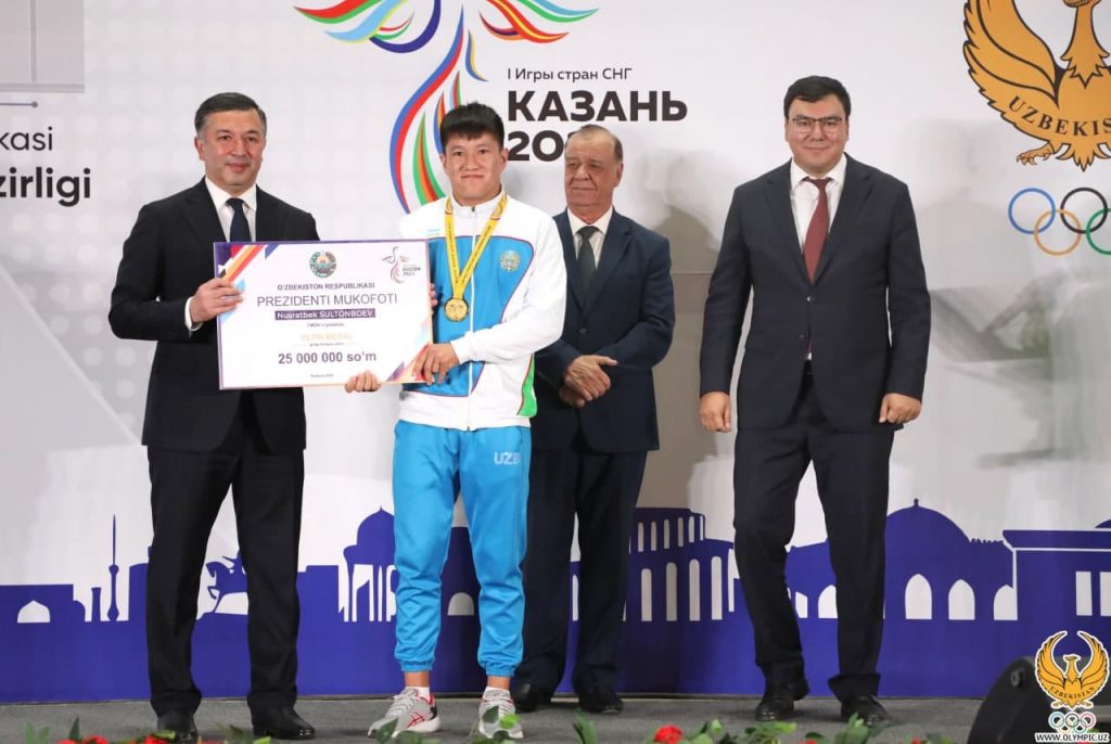 Шундан сўнг биринчи МДҲ ўйинларида ғолиб ва совриндор бўлган спортчиларимизга Ўзбекистон Республикаси Президенти совғаси топширилди. Унга кўра, мусобақада олтин медалга сазовор бўлган спортчиларга 25 миллион, уларнинг устозларига 12.5 миллион, кумуш медаль соҳибларига 15 миллион ва уларнинг тренерларига 7.5 миллион, бронза медали эгаларига эса 10 миллион, уларни тарбиялаган мураббийларига 5 миллион сўмдан пул мукофотларининг сертификатлари топширилди. Эстрадамизнинг бир қатор ёрқин вакиллари ижросидаги куй-қўшиқлар тантанали маросимга ўзгача файз берди.