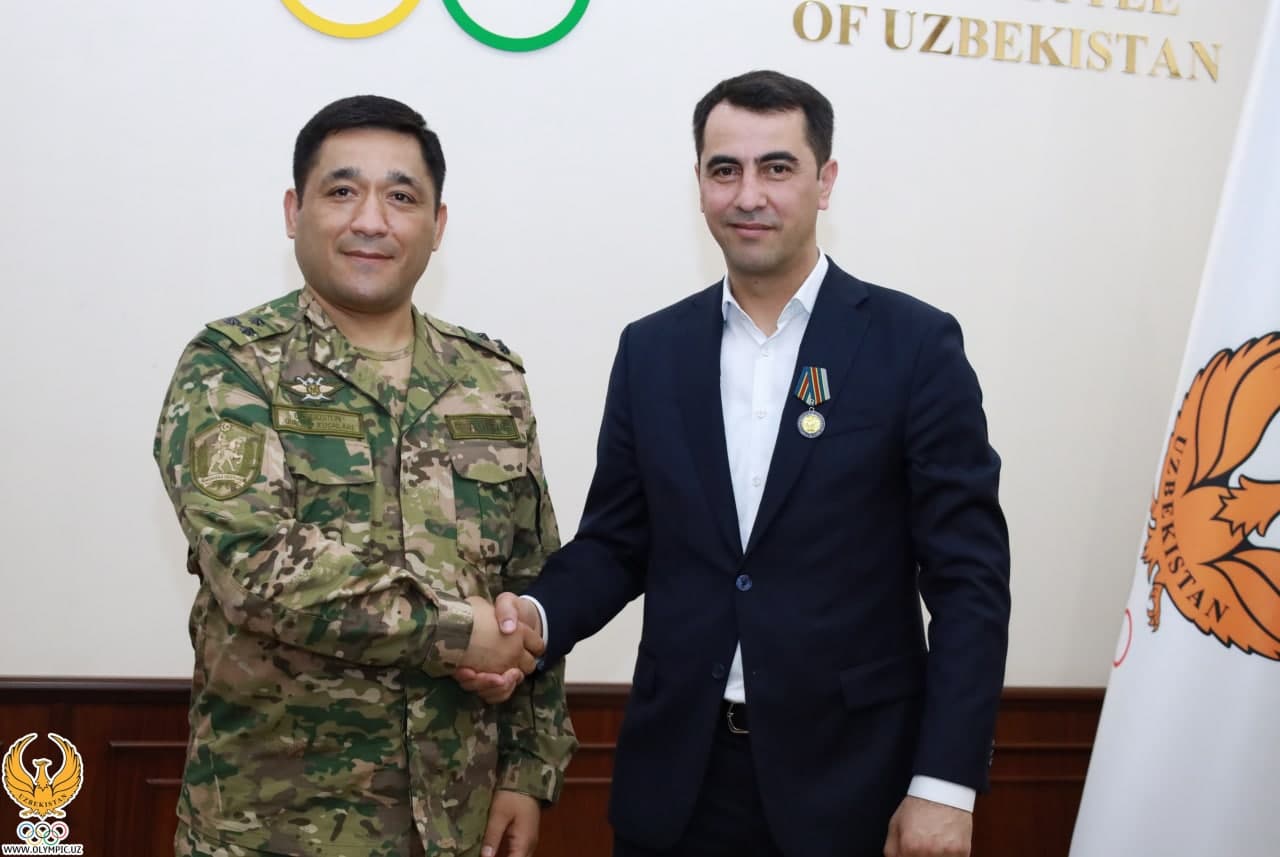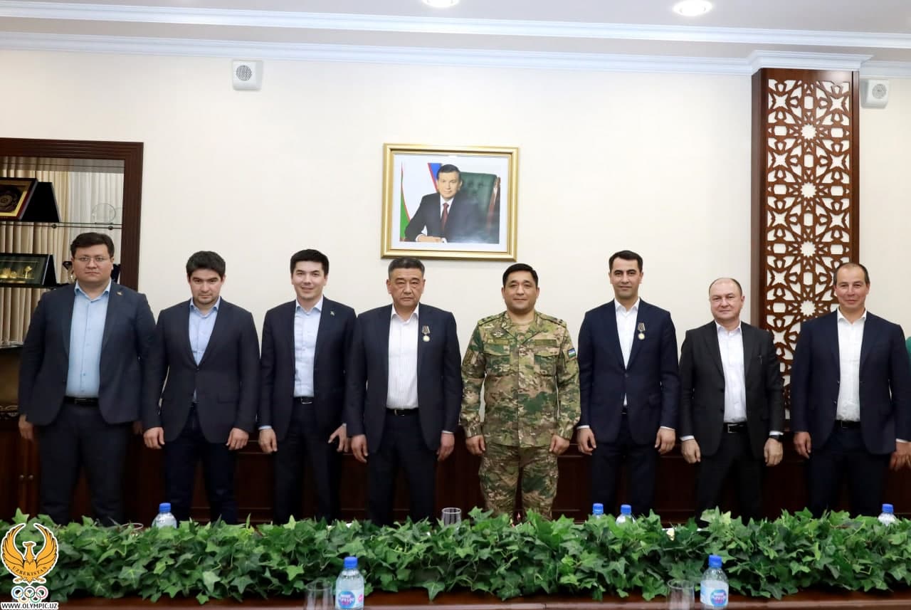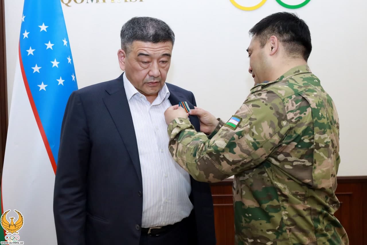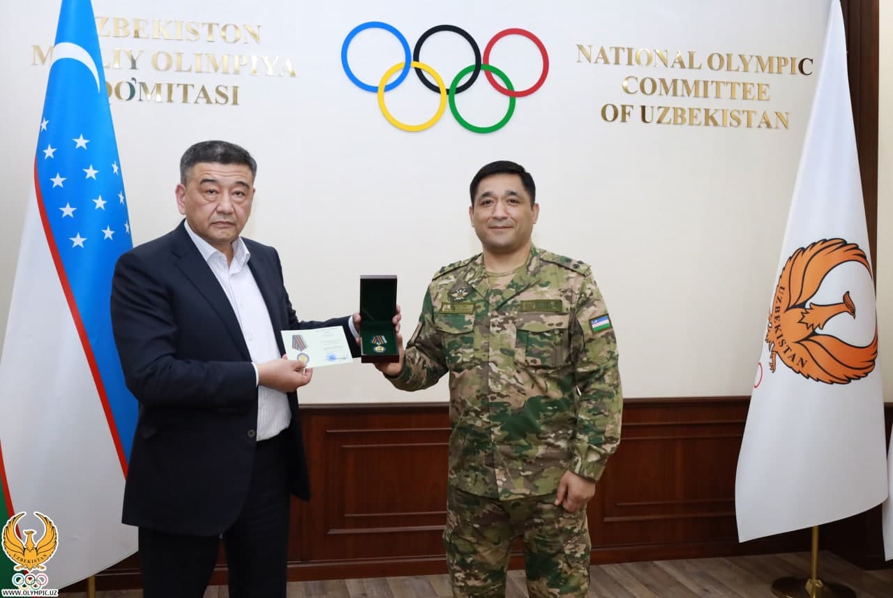 Унга кўра, Осиё Олимпия кенгаши вице-президенти Отабек Умаров, МОҚ раиси Рустам Шоабдураҳмонов ва унинг биринчи ўринбосари Равшан Ирматов, Қўмита Бош котиби Ойбек Касимов, МОҚ раиси ўринбосарлари Азизжон Камилов, Шерзод Ташматов, Миллий Паралимпия қўмитаси раиси Мухторхон Ташходжаев, шунингдек, бир қатор спорт федерация ва ассоциациялар раҳбарлари ҳам мазкур эсдалик нишони билан тақдирланишди. Мукофотларни Ўзбекистон Республикаси Мудофаа вазирининг ўринбосари Алишер Нарбаев топширлди.