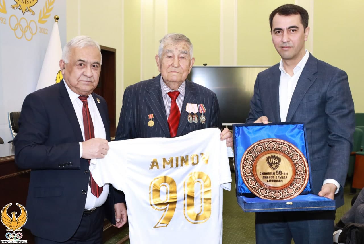 Хабар берганимиздек, кеча ўзбек футболи тарихига ўз номини битиб улгурган фахрийларимиздан бири Элмар Аминов 90 ёшни қарши олди. Бугун у кишининг қутлуғ юбилейи шарафига МОҚда кичик қутлов тадбири ўтказилди.