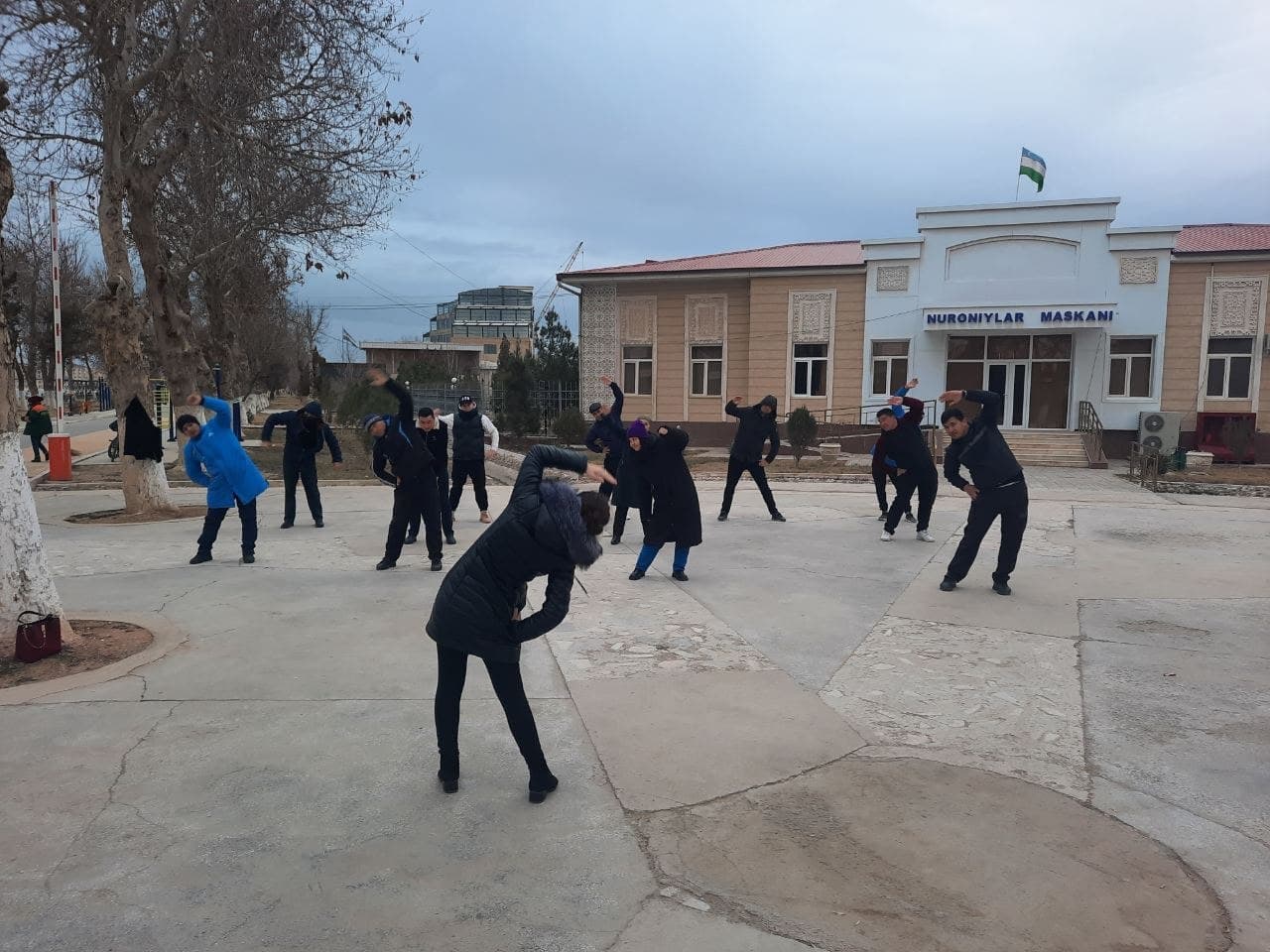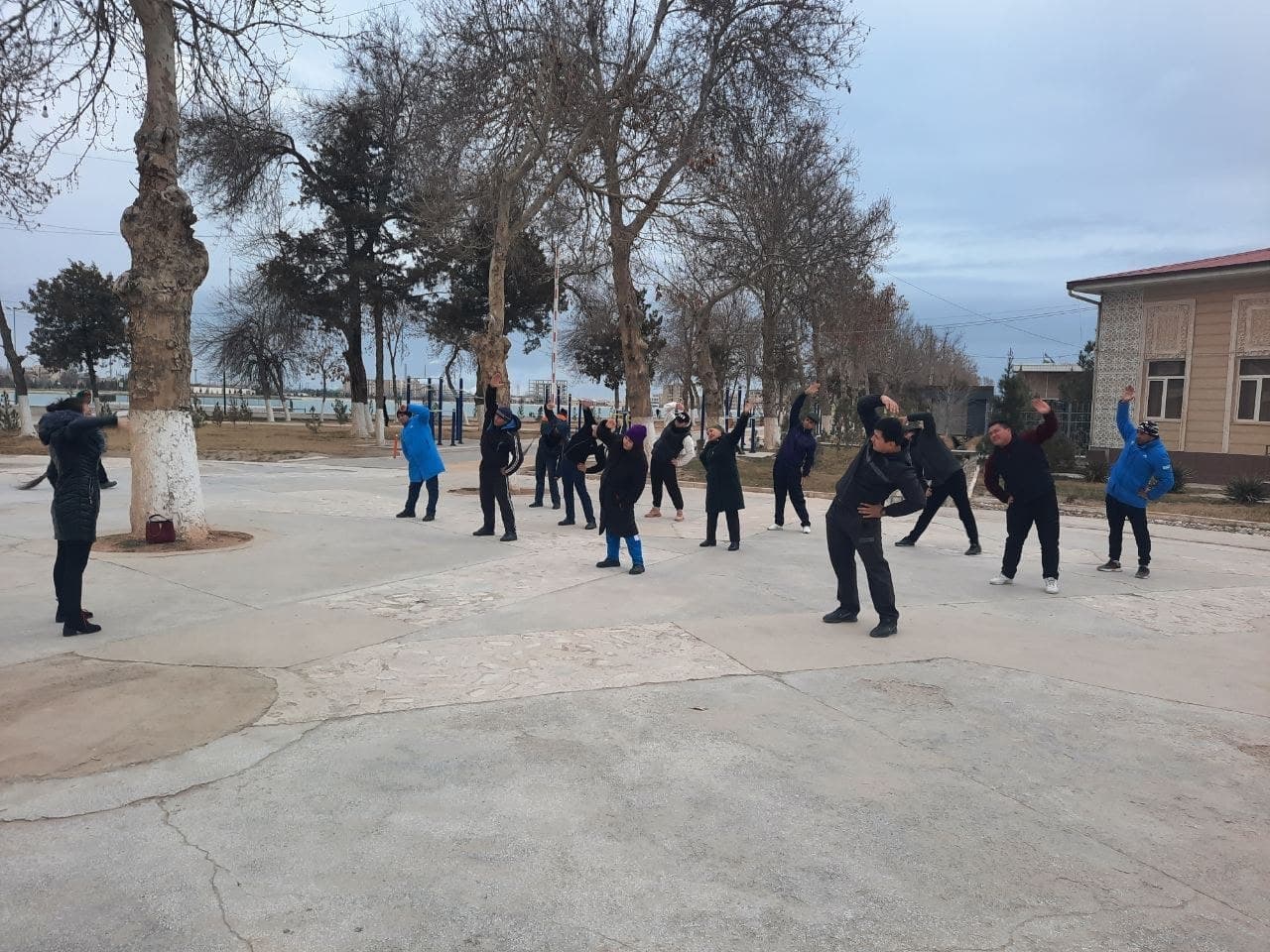 Ҳар тонг эрталаб ходимларимиз ўртасида соғлом турмуш тарзини кенг тадбиқ этиш, ҳар бир фуқарода имум тизимини таъминлаш мақсадида бадантарбия машқларини бажариш одат тусига айланган. Шунингдек, спортнинг сув турларига ихтисослаштирилган болалар-ўсмирлар спорт мактабининг ишчи ходимлари ўртасида 5000 қадам, эрталабки бадантарбия машқлари мунтазам бажарилиб келинмоқда.
