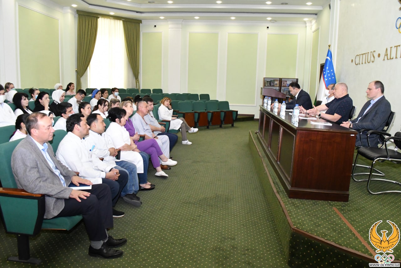8-9 апрель кунлари Россиянинг "Спинной мозг" жамияти президенти, Россия, Европа ва жаҳон нейрохирургия ассоциацияси аъзоси, тиббиёт фанлари доктори, профессор Андрей Владимирович Басков Миллий Олимпия қўмитаси қошидаги Республика спорт тиббиёти илмий-амалий марказига ташриф буюрди.