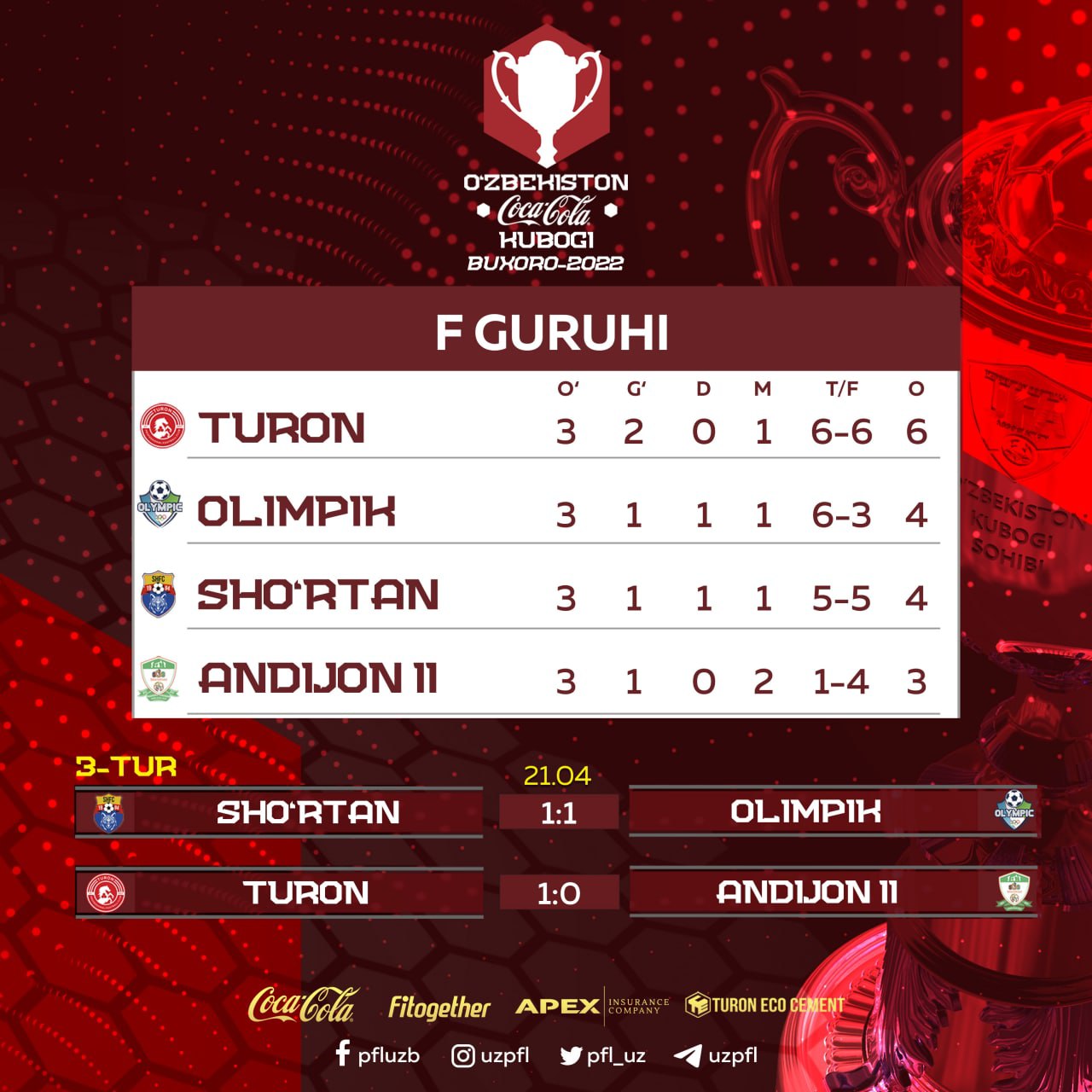 Coca-Cola kubogi-2022, “F” гуруҳи 3-тур