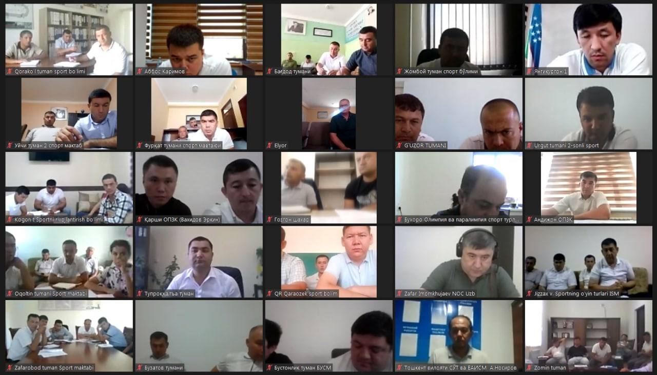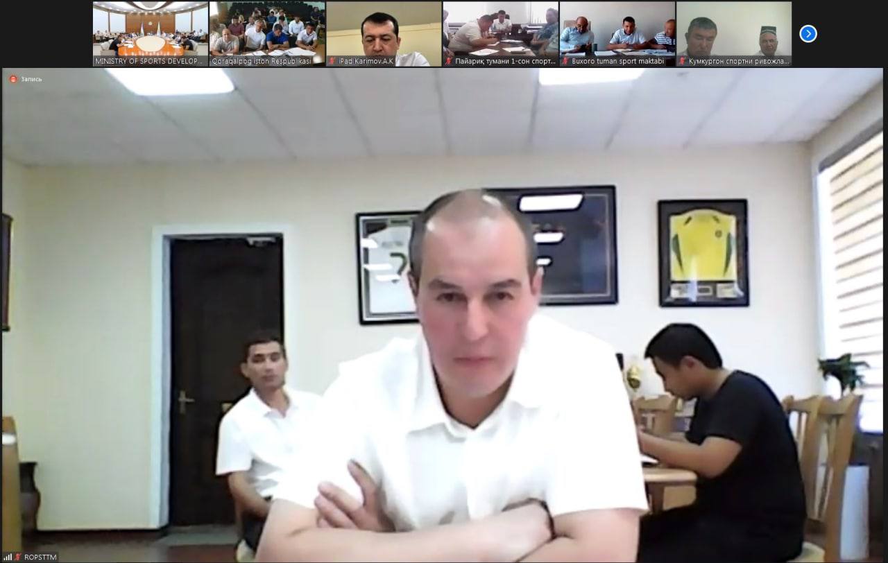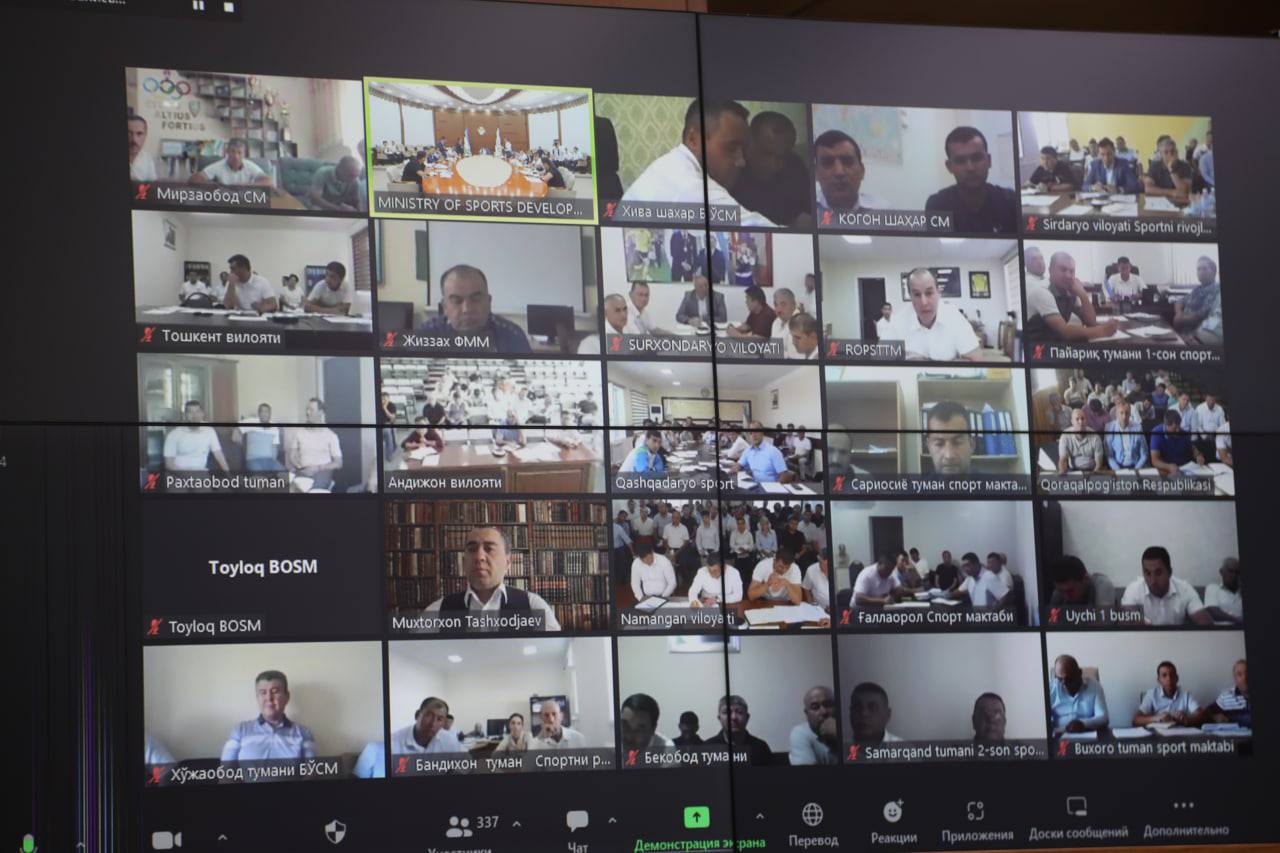 Спортни ривожлантириш вазири Адҳам Икрамов бошчилигида спорт таълимини янада ривожлантириш, Олимпия ва Паралимпия спорт турларига тайёрлаш марказларида олиб борилаётган касбий-амалий имтиҳонларнинг шаффоф ўтишини таъминлаш мавзуларида видеоселектор йиғилиши ўтказилди. Унда Вазирлик, Миллий Олимпия қўмитаси ва Миллий Паралимпия қўмитаси раҳбарияти ва ходимлари, Республика Олий спорт маҳорати мактаблари, вилоят ва туманлардаги спорт бошқармаларнинг мутасаддилари, Республикадаги барча БЎСМ ва ИБЎСМ вакиллари иштирок этишди.