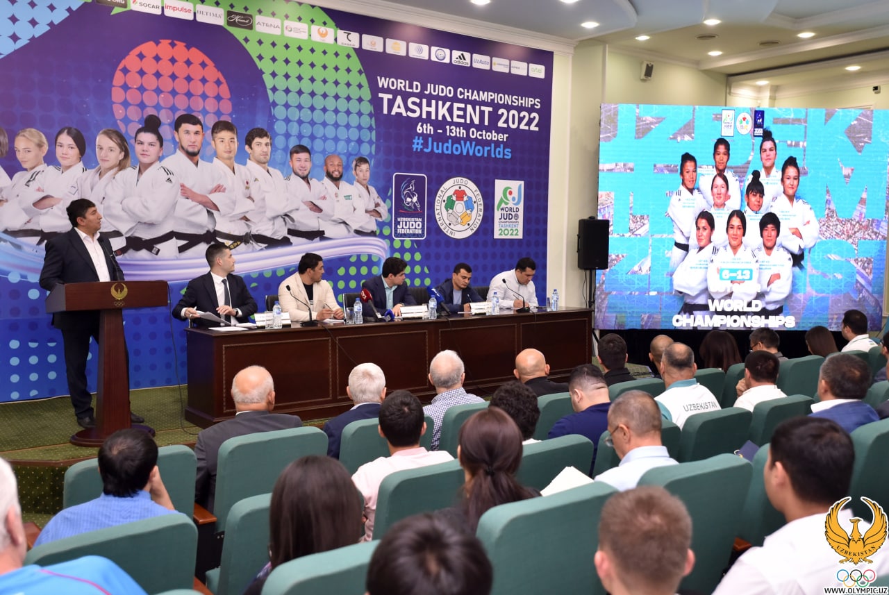 Бугун Ўзбекистон Миллий Олимпия қўмитасида дзюдо бўйича 6-13 октябрь кунлари Тошкентда бўлиб ўтадиган жаҳон чемпионати олдидан матбуот анжумани бўлиб ўтди. Унда оммавий ахборот воситалари ходимлари терма жамоамизнинг бўлажак мусобақада иштирок этадиган таркиби, спортчиларимизнинг жисмоний ва руҳий ҳолати каби мавзуларда ўзларини қизиқтирган саволларга жавоб олишди.