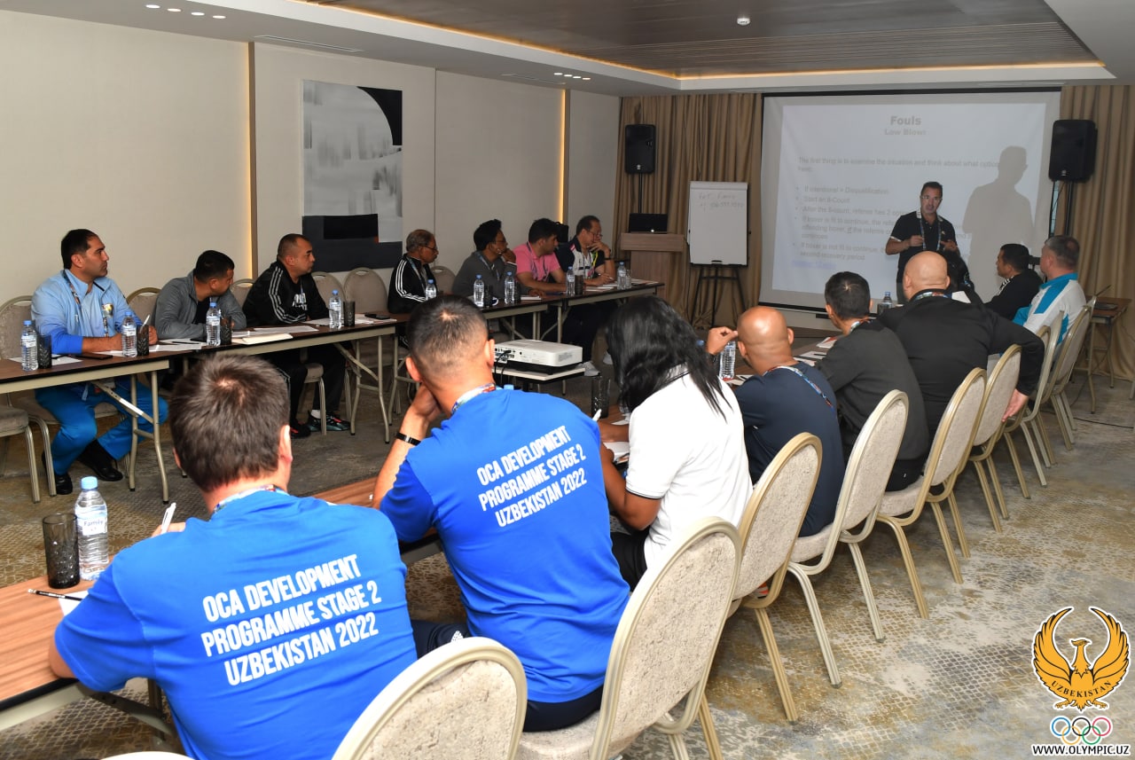 Машғулотлар канадалик экспертлар Гордон Апаллони ҳамда Паскаль Фиакко томонидан олиб борилмоқда. Назарий машғулотлар "Lumiere" меҳмонхонасида, амалиёт эса Республика Олимпия ва Паралимпия спорт турларига тайёрлаш марказида кетмоқда. Ушбу спорт тури бўйича ташкил этилаётган дарсларда 38 нафар мутахассис қатнашяпти.