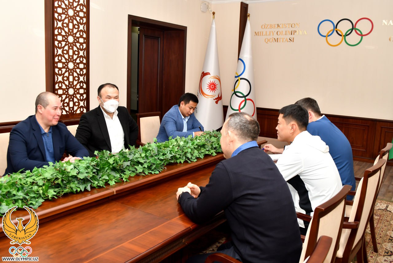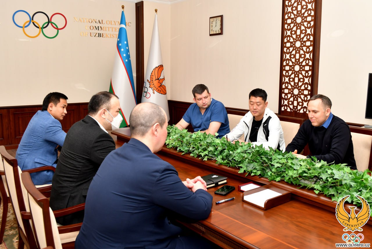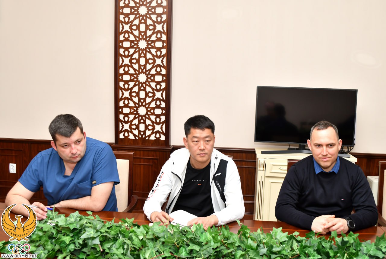 Учрашувда Қўмита раиси ўринбосари, мамлакат таэквондо WT ассоциацияси раиси Шерзод Ташматов, МОҚ қошидаги Республика спорт тиббиёти илмий-амалий маркази директори Камол Сирожитдинов, терма жамоа бош мураббийи Павел Хан иштирок этишди.