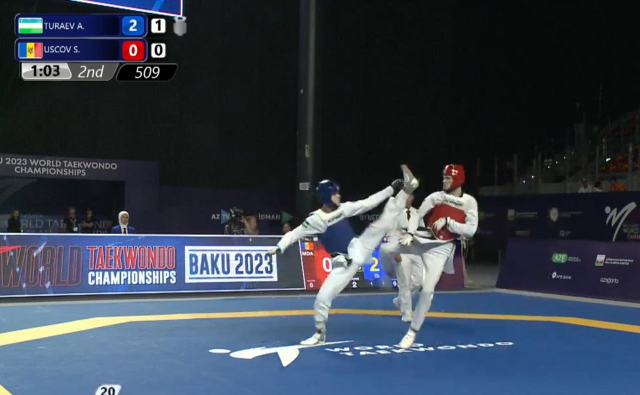 Жаҳон чемпионатида -58 кг вазн тоифасида иштирок этаётган таэквондочимиз Амир Тўраев ҳам илк жангни муваффақиятли ўтказди. Молдовалик Сергей Усков билан беллашган юртдошимиз 2:0 ҳисобида ғалаба қозонди.