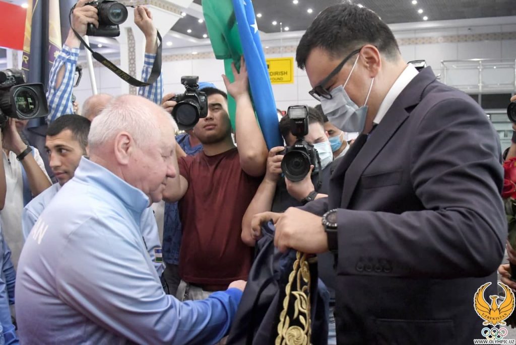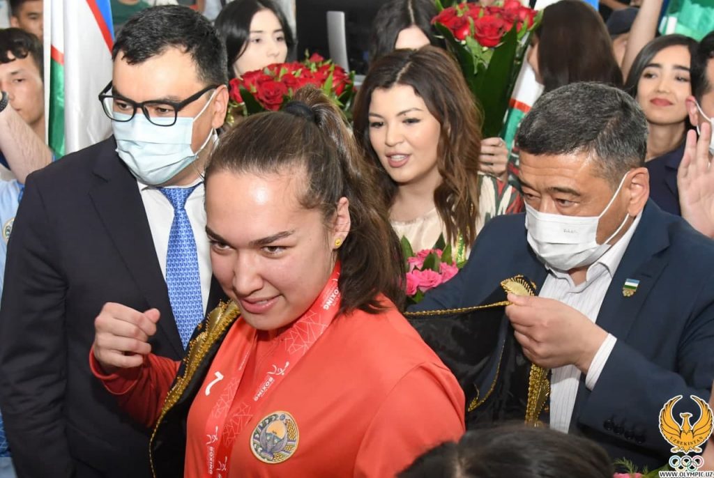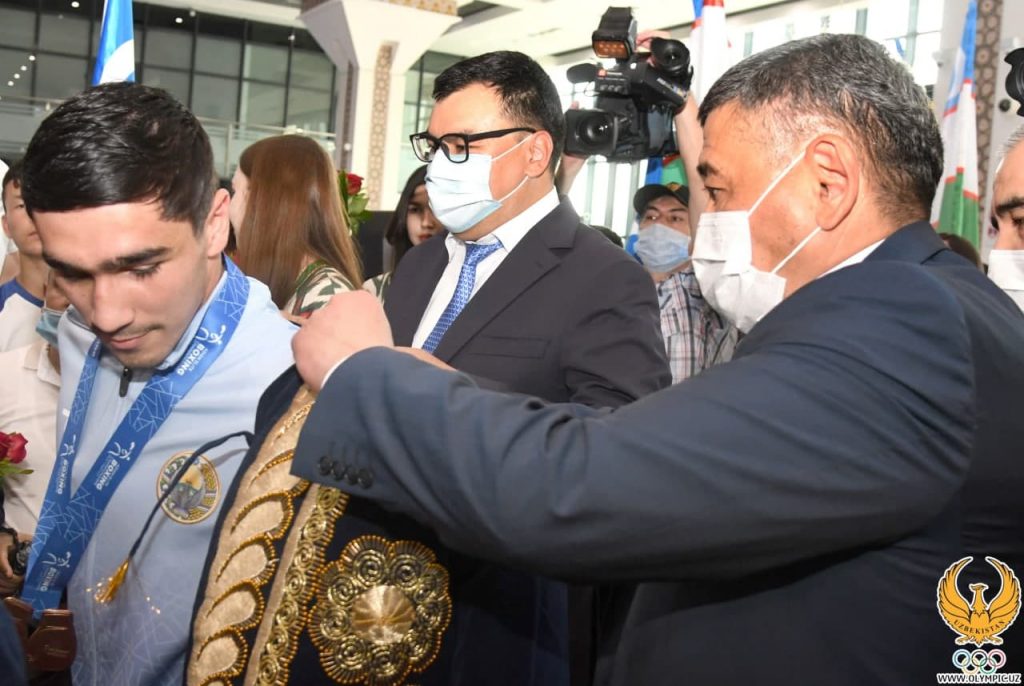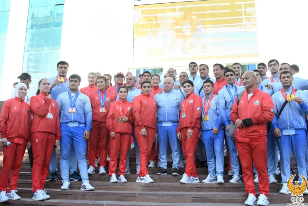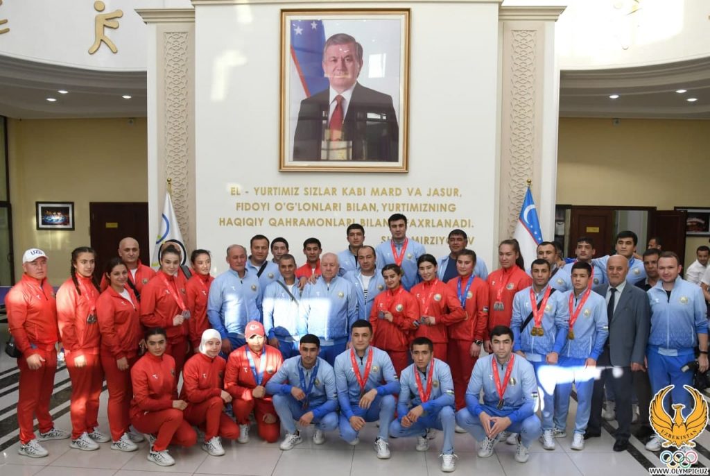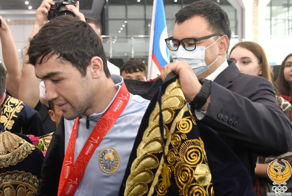 БААнинг Дубай шаҳрида ўтган бокс бўйича Осиё чемпионатида юртимиз шарафини муносиб ҳимоя қилган терма жамоамиз бугун она диёримизда тантанали кутиб олинди. Дастлаб Ислом Каримов номидаги Тошкент Халқаро аэропортида ўтган тадбир кейинчалик Ўзбекистон Миллий Олимпия қўмитасига кўчди. Эътиборингизга спорт жамоатчилиги вакиллари, боксчиларимизнинг яқинлари билан ўтган ушбу ажойиб тадбирлардан фотогалереяни ҳавола қиламиз.