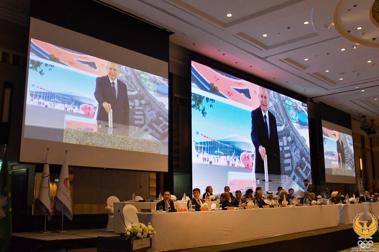 Шундан сўнг яқинлашиб келаётган комплекс мусобақаларга тайёргарлик бўйича тақдимотлар ўтказилди. Унда Тошкент-2025 ёшлар Осиё ўйинларига ҳам алоҳида тўхталиб ўтилди. Даставвал, Отабек Муҳаммадалиевич сўз олиб, Ўзбекистон Республикаси Президенти Шавкат Мирзиёевнинг шахсан ўзлари ушбу лойиҳага бош-қош бўлаётганлари, ҳукуматнинг ёрдами билан катта ҳажмда тайёргарлик ишлари олиб борилаётгани хусусида гапирди. Шундан сўнг Ўзбекистоннинг ёшлар Осиё ўйинларини қабул қила оладиган салоҳиятини ҳар томонлама кўрсатиб берувчи ролик намойиш этилди. Тақдимотда Ойбек Омилович Ўйинлар ҳақида умумий маълумот берди. Унда мусобақа ўтиши кўзда тутилган саналар, спорт турлари, беллашувларга мезбонлик қиладиган шаҳарлар ва объектлар, меҳмонларга яратиладиган қулайликлар, транспорт ва логистика тизими каби йўналишлар бўйича атрофлича тўхталиб ўтилди. Тақдимот қитъадошларимиз томонидан илиқ қабул қилинди.