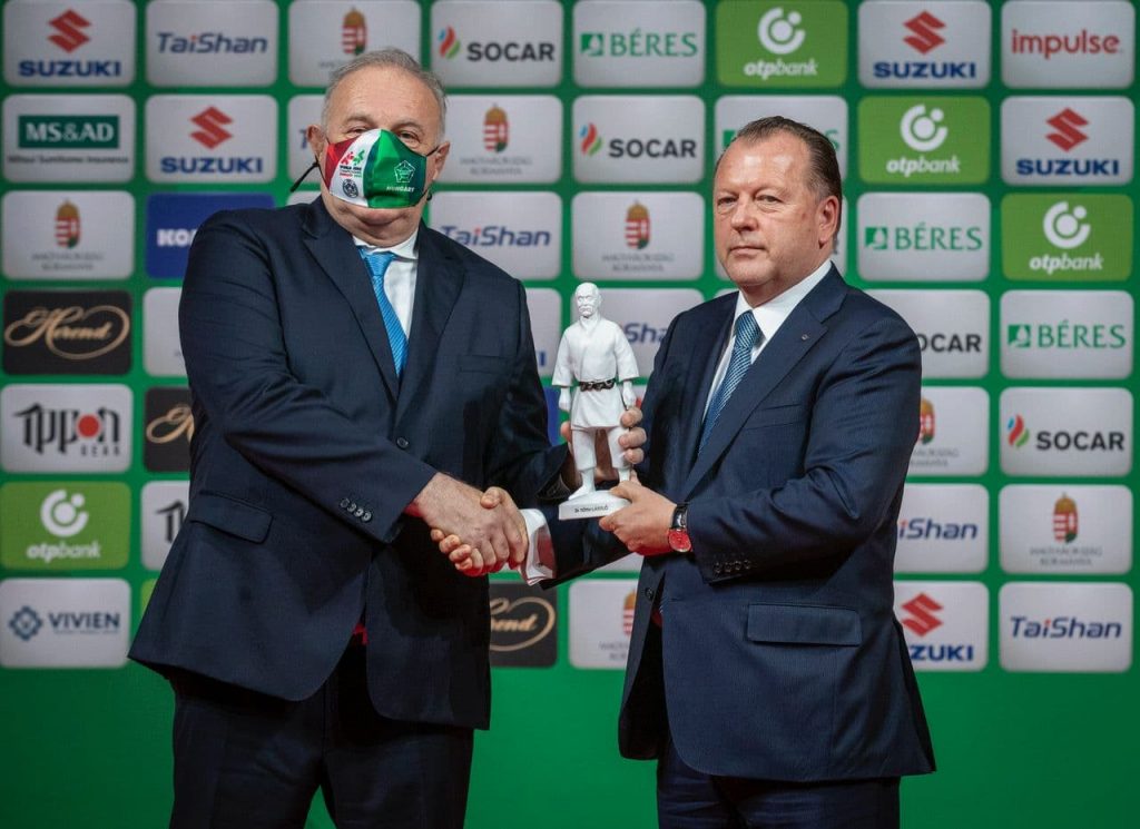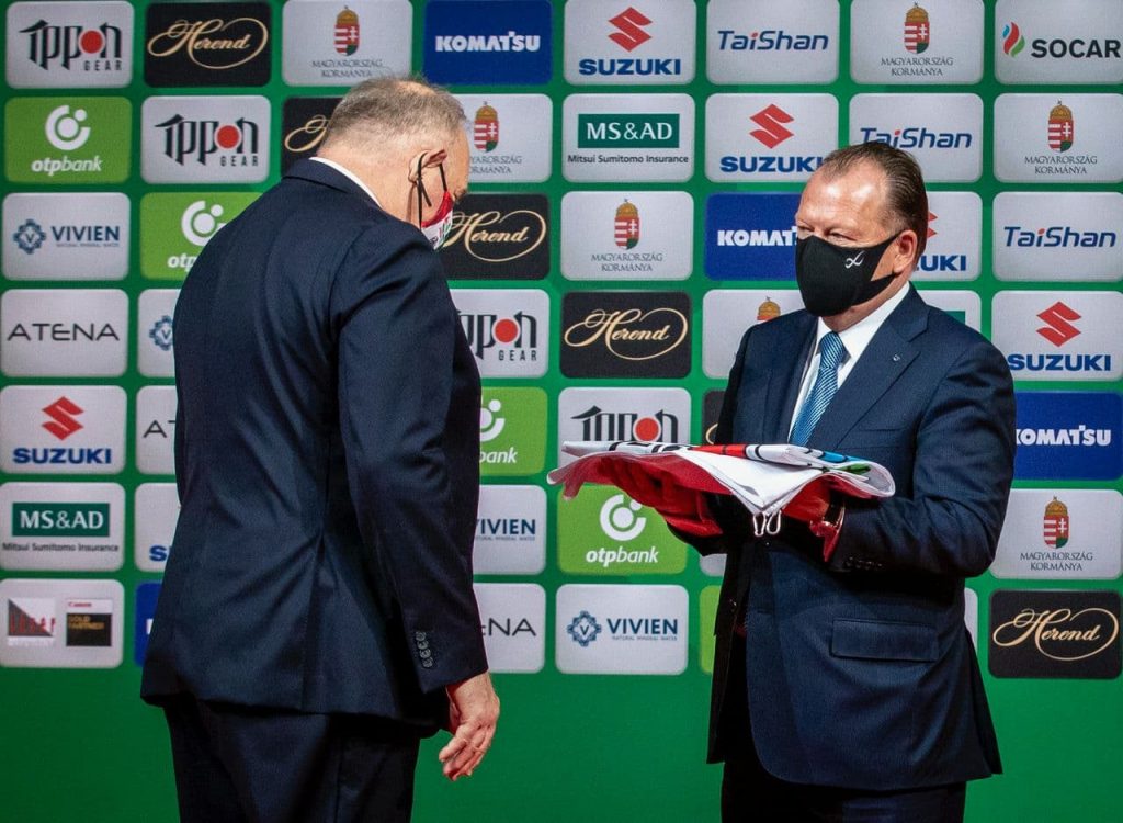 Ушбу тадбирда Халқаро дзюдо федерацияси президенти Мариус Визер, МОҚ раиси ўринбосари, Ўзбекистон дзюдо федерацияси раиси Азизжон Камилов, Венгрия дзюдо федерацияси президенти Ласло Тоц иштирок этишди. Тадбирда мусобақа мезбонлигини англатувчи IJF байроғини мезбон томон Мариус Визерга топширди. Ўз навбатида, IJF раҳбари байроқни жаҳон чемпионатининг кейинги мезбони – Ўзбекистон томонига тақдим қилди. Байроқни Азизжон Камилов қабул қилиб олар экан, давлатимизнинг қўллаб-қувватлаши билан келгуси дунё биринчилигини Тошкент юқори савияда ташкил этишини таъкидлаб ўтди.